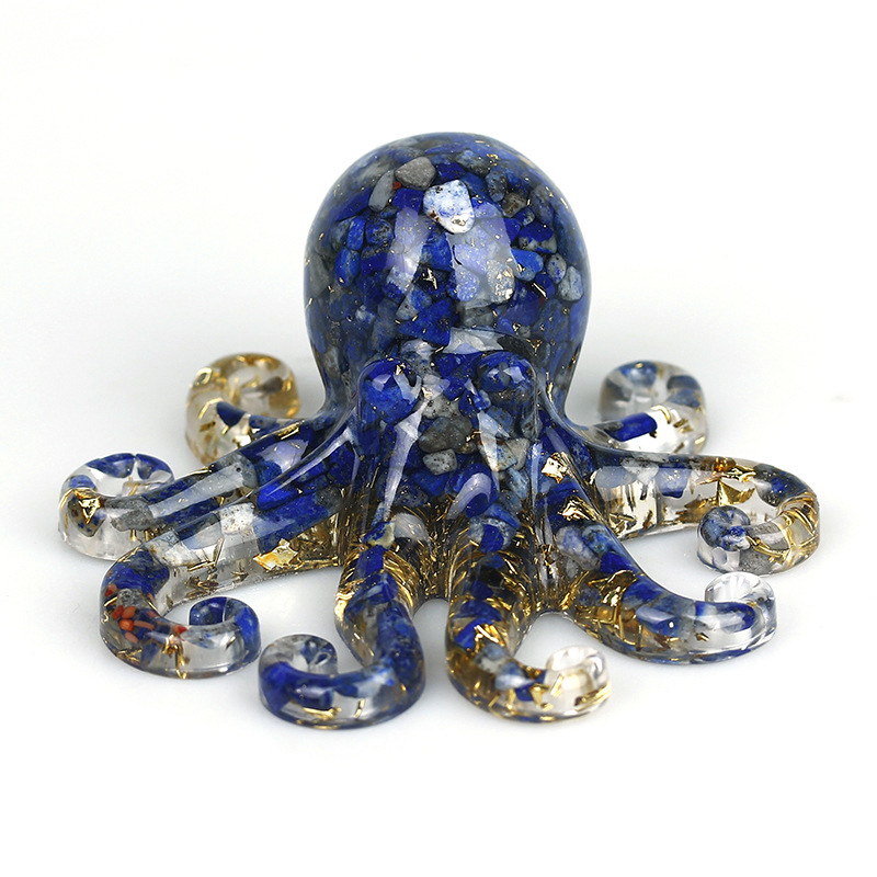 pierre gemme décoration, avec résine, Poulpe, goutté d'époxy, différents matériaux pour le choix, 100x90x45mm, Vendu par PC