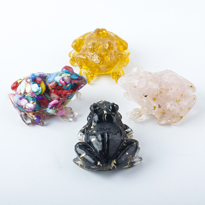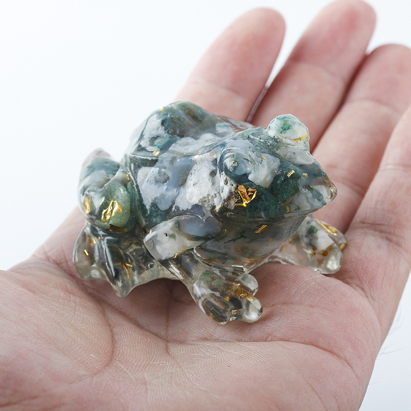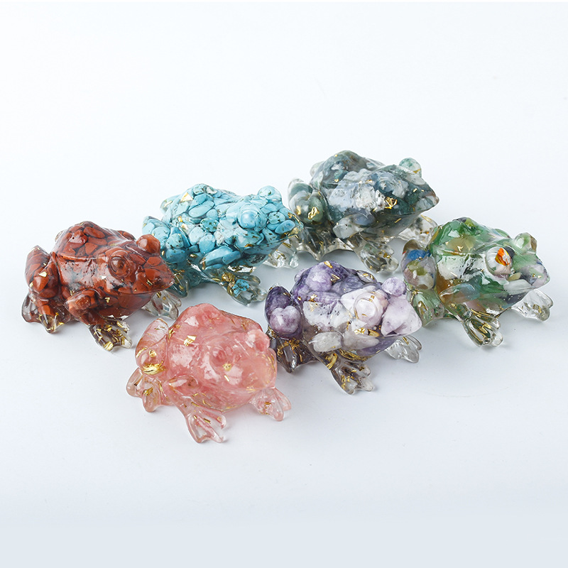 pierre gemme décoration, avec résine, grenouille, goutté d'époxy, différents matériaux pour le choix, 50x60x35mm, Vendu par PC