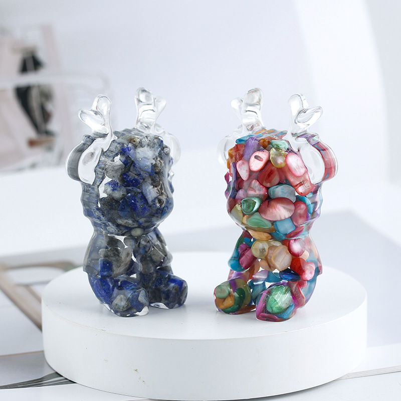 pierre gemme décoration, avec résine, gazelle, goutté d'époxy, différents matériaux pour le choix, 70x45x20mm, Vendu par PC