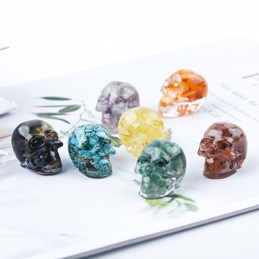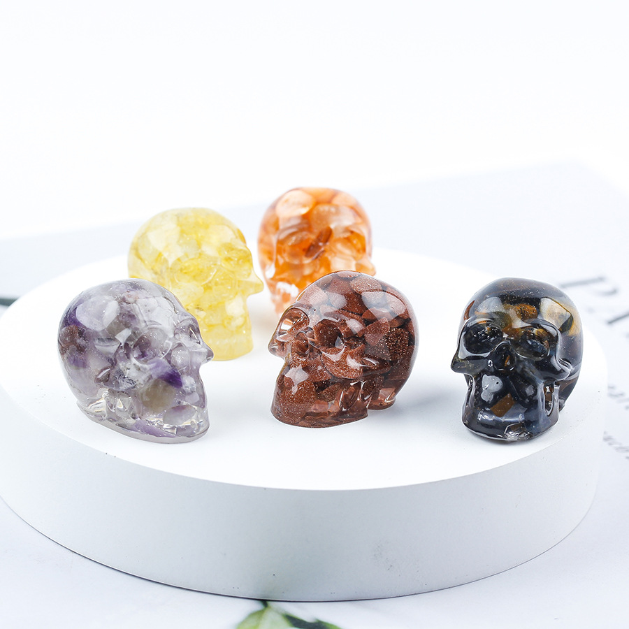 pierre gemme décoration, avec résine, crane, goutté d'époxy, différents matériaux pour le choix, 30x20x20mm, Vendu par PC