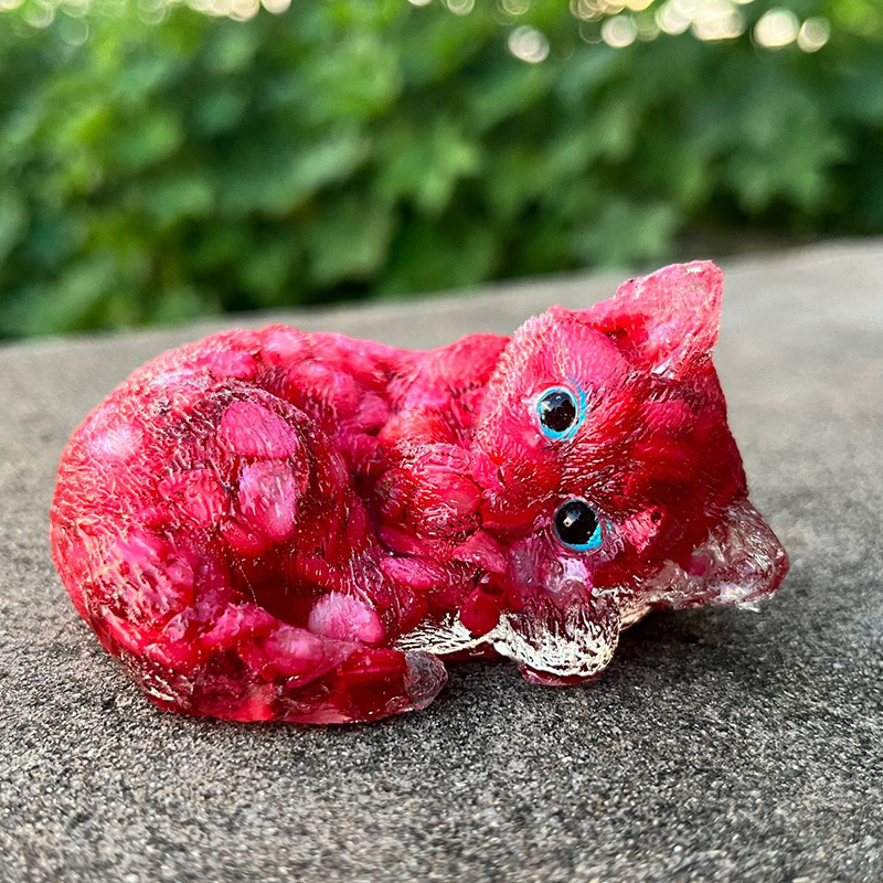 pierre gemme décoration, avec résine, chat, goutté d'époxy, différents matériaux pour le choix, 75x52x40mm, Vendu par PC