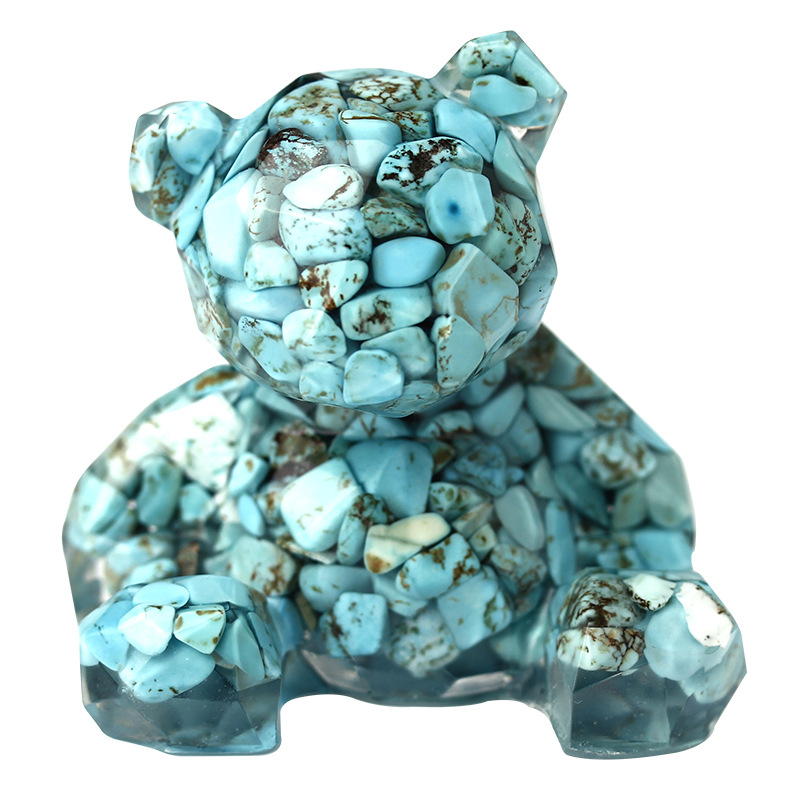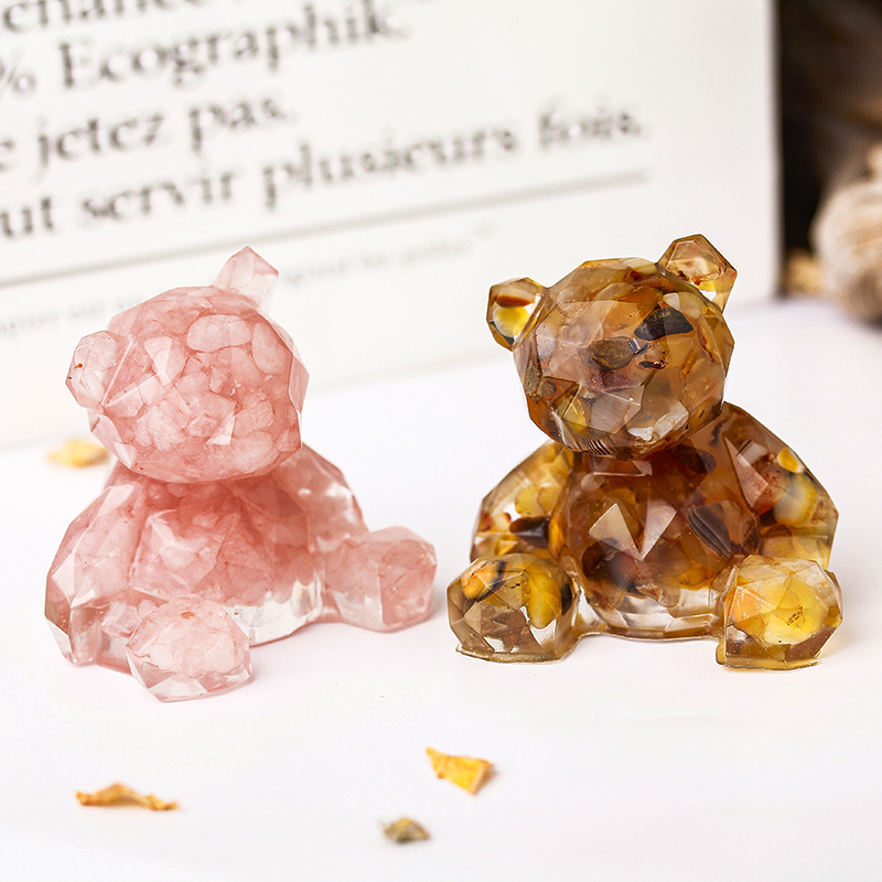 pierre gemme décoration, avec résine, ours, goutté d'époxy, différents matériaux pour le choix, 60x60x53mm, Vendu par PC