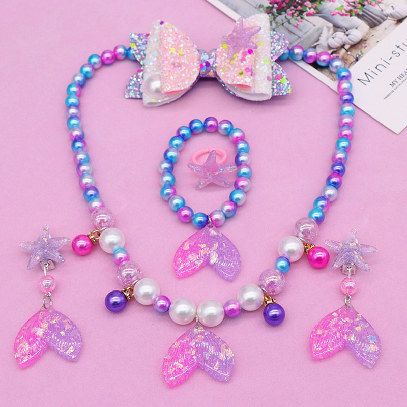 plastique Ensemble de bijoux d'enfants, avec tissu, Queue de sirène, Fille & styles différents pour le choix, hair clip length 5cm, necklace length 45cm, bracelet length 15cm, Vendu par fixé