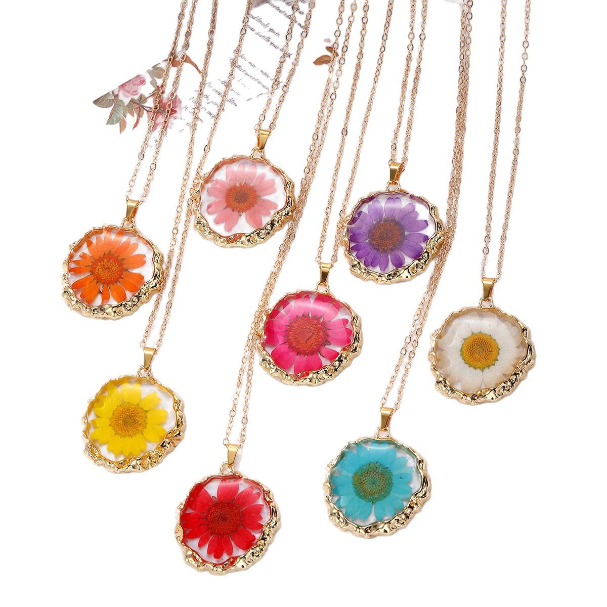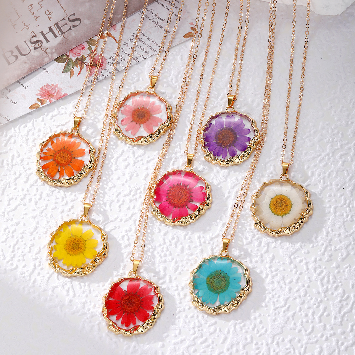 plastique collier, avec Fleurs séchées & alliage de zinc, goutté d'époxy, bijoux de mode, plus de couleurs à choisir, 30x30x5mm, Longueur:51-80 cm, Vendu par PC