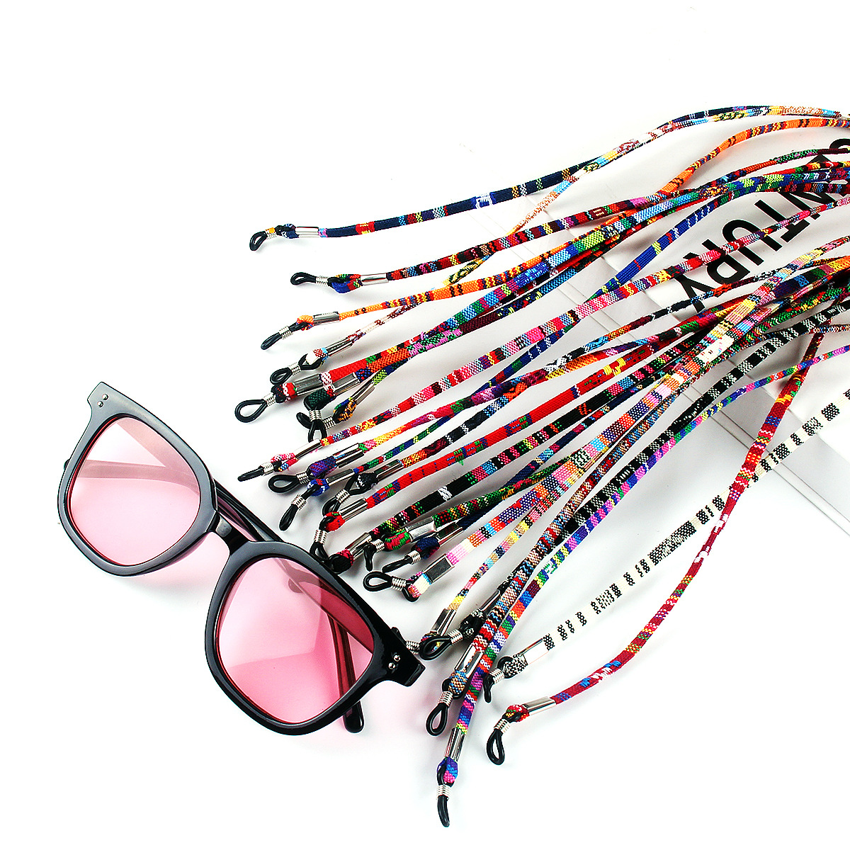 polyester et coton Lunettes Corde anti-dérapage, Placage de couleur d'or, DIY, plus de couleurs à choisir, 700x3x3mm, Longueur:70 cm, 2PC/sac, Vendu par sac