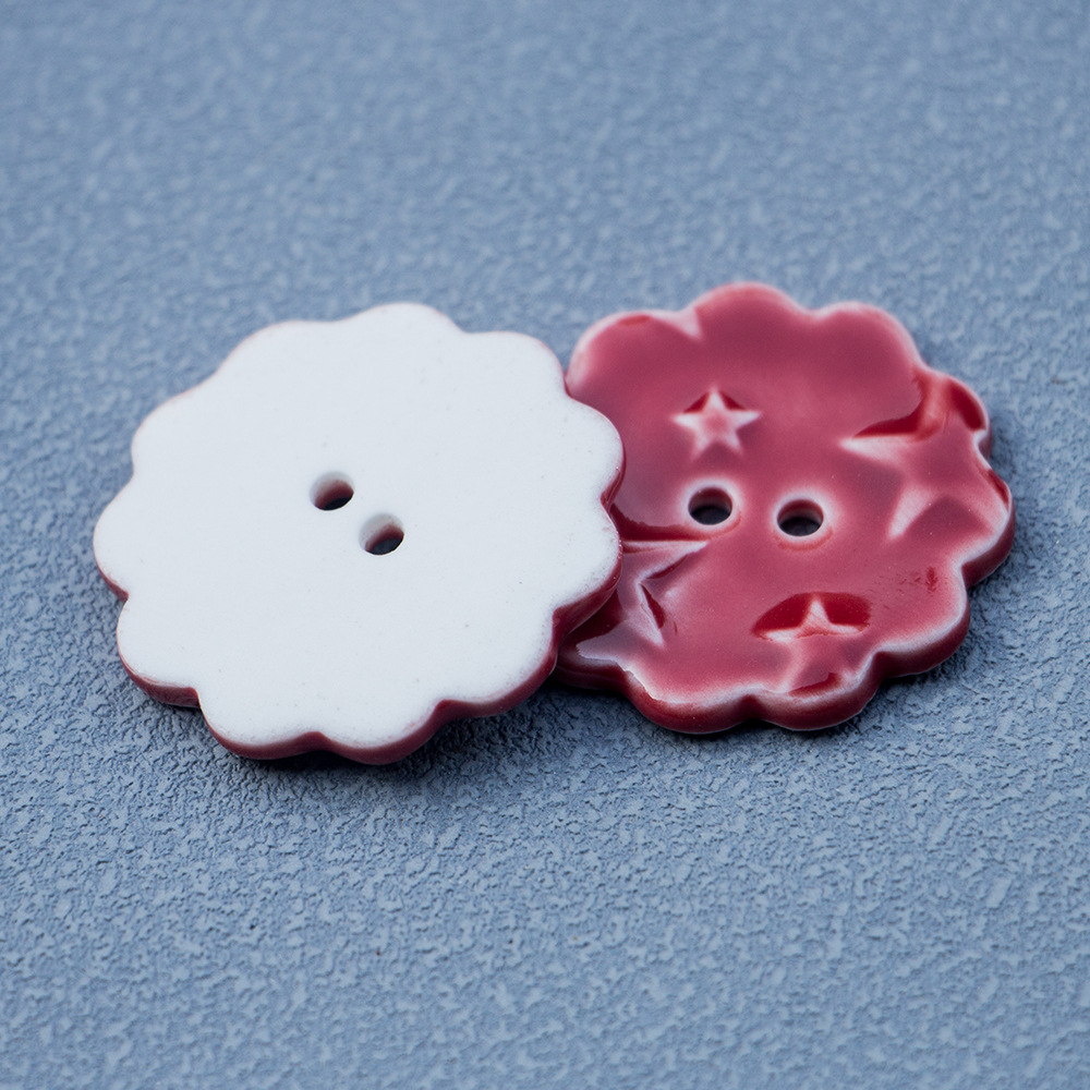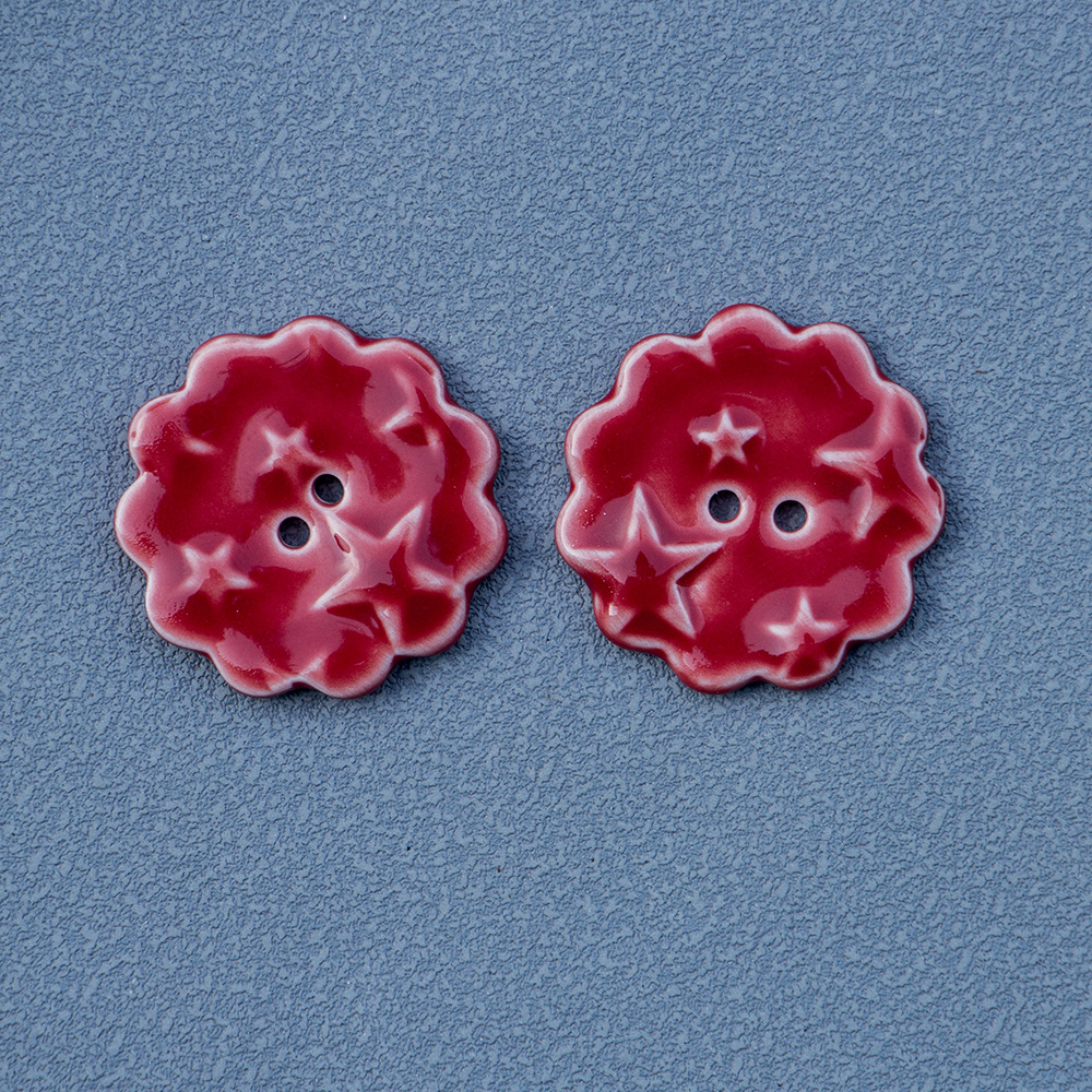 porcelaine bouton à deux trous, fleur, DIY, rouge, Vendu par PC