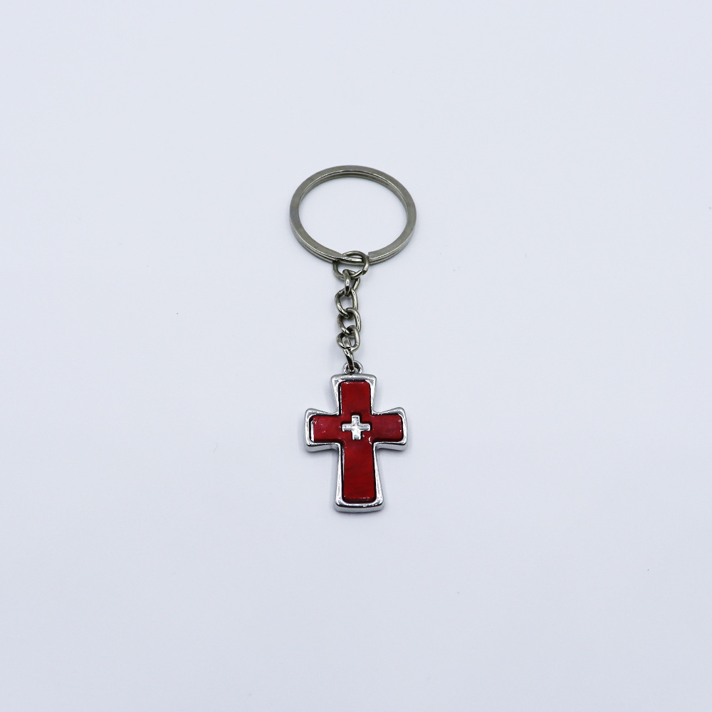 porte-clés en alliage zinc à stras, alliage de zinc, croix, Placage de couleur platine, avec strass, protéger l'environnement, sans nickel, plomb et cadmium 92mm Environ 26mm Environ 3.6 pouce, Vendu par brin