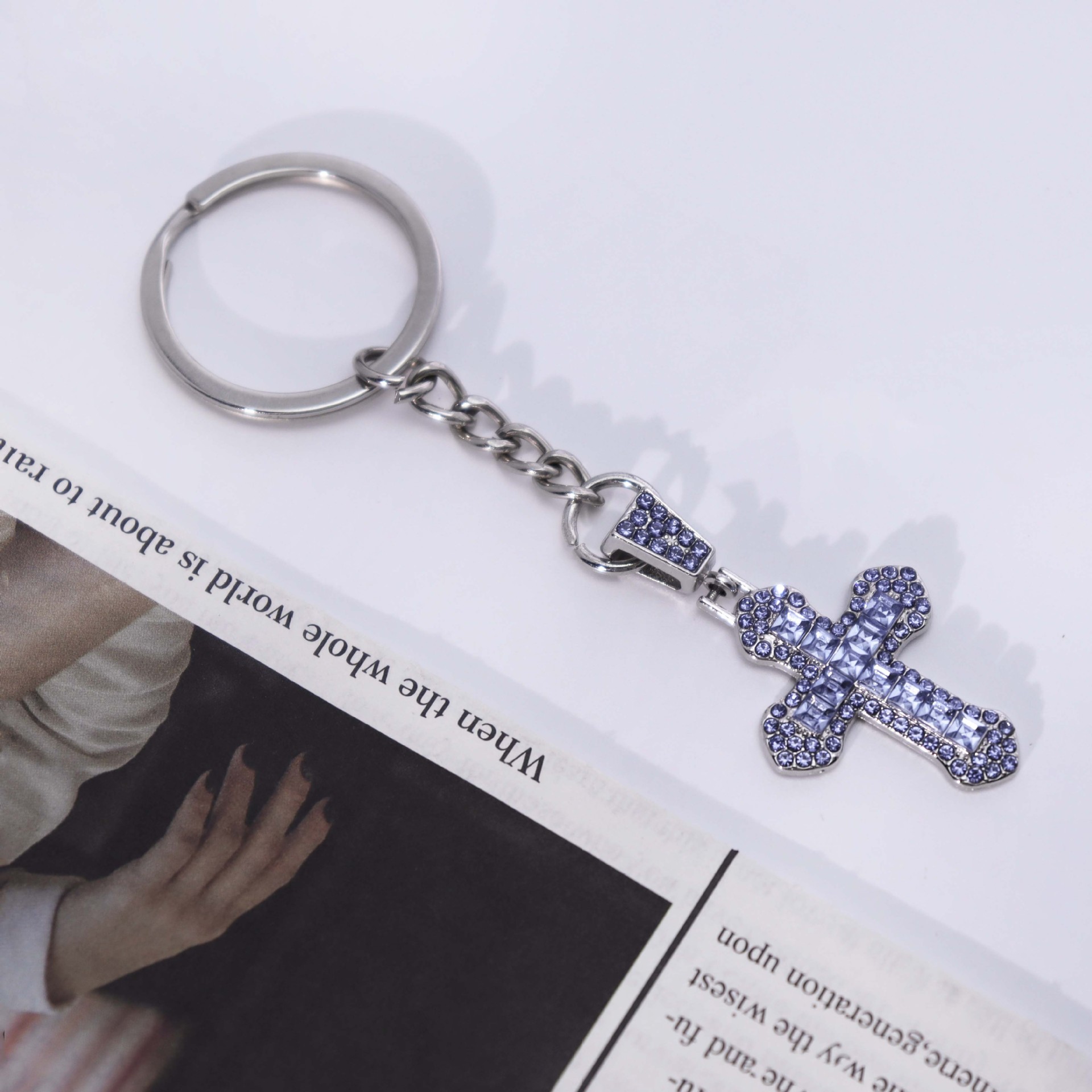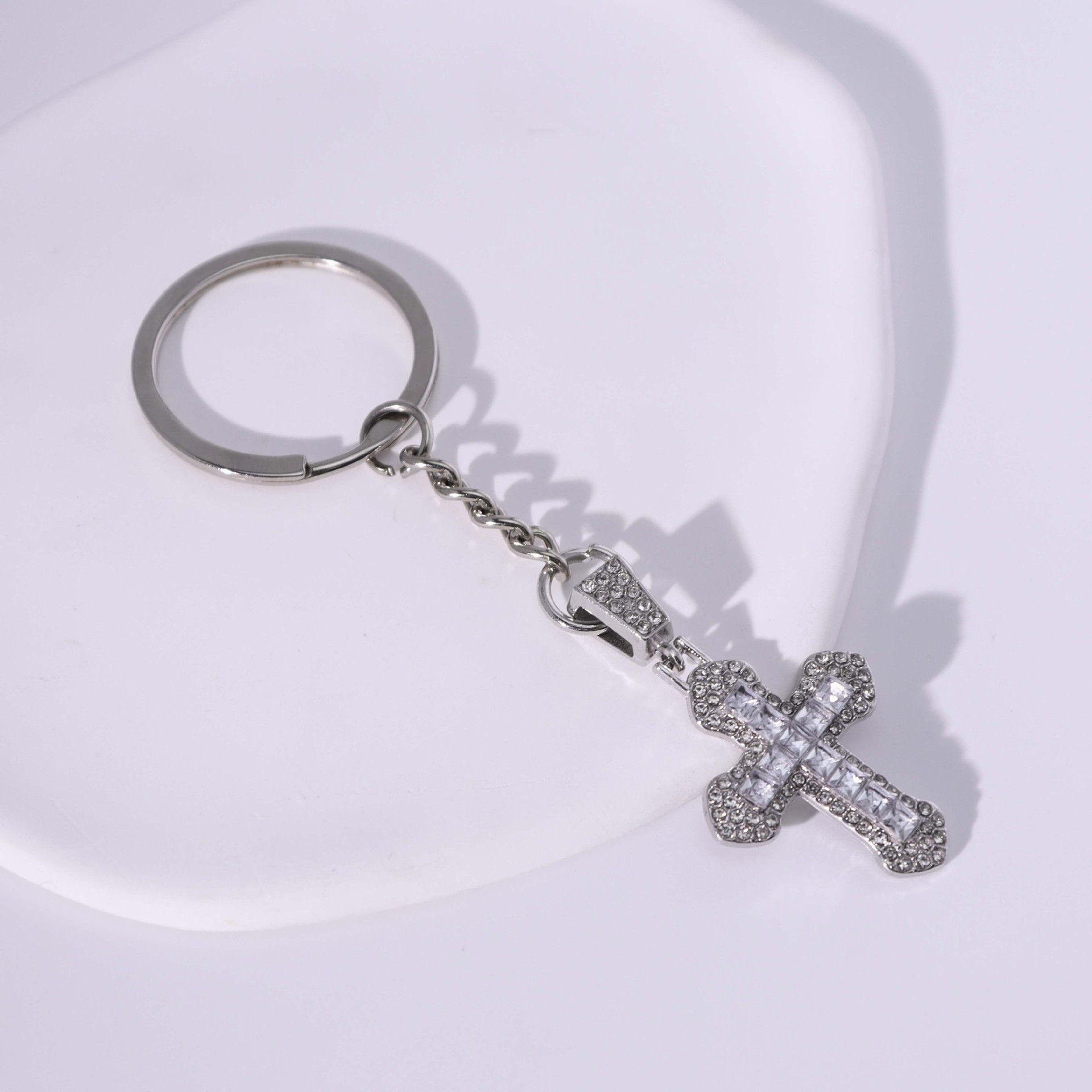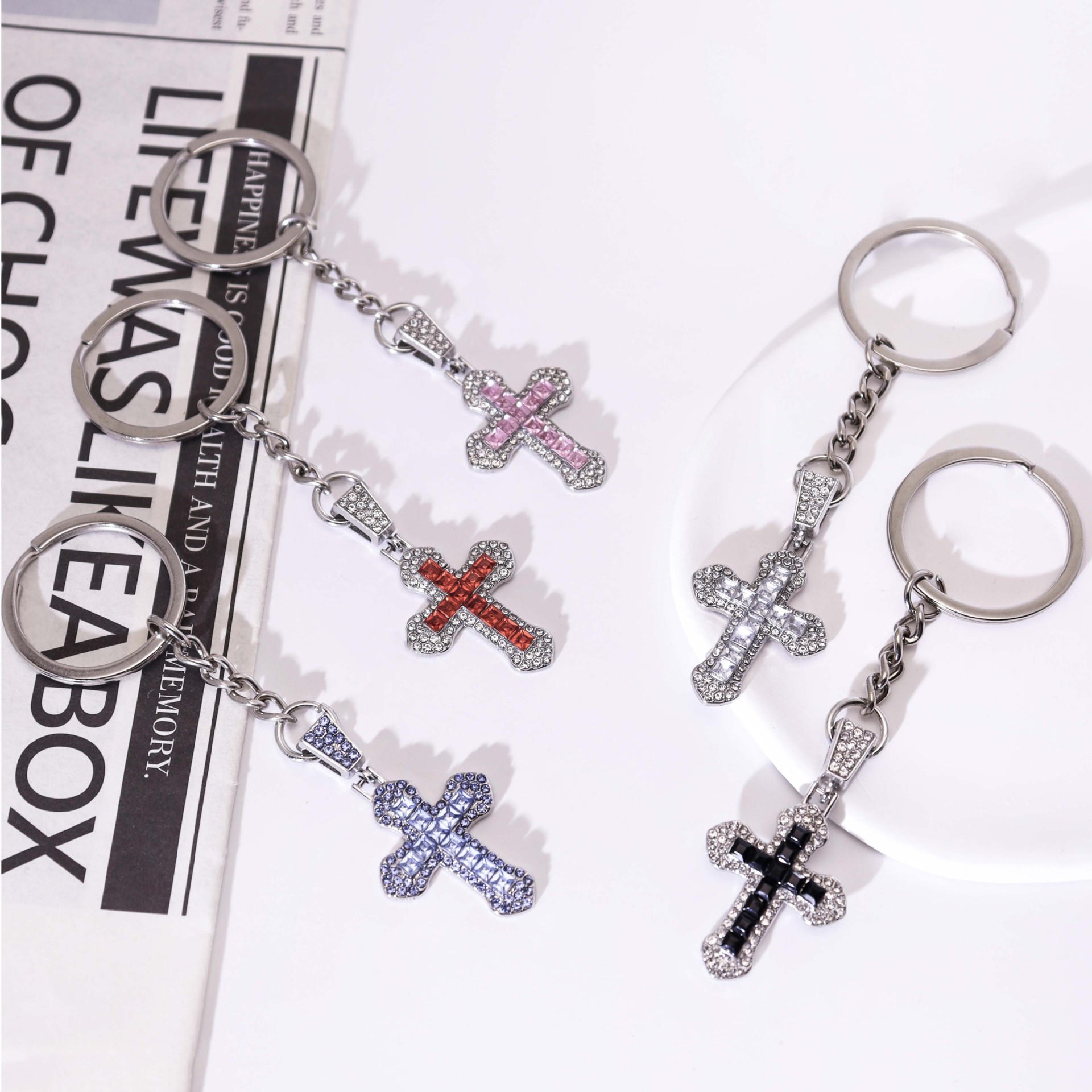 porte-clés en alliage zinc à stras, alliage de zinc, croix, Placage de couleur d'or, bijoux de mode, plus de couleurs à choisir, Vendu par PC