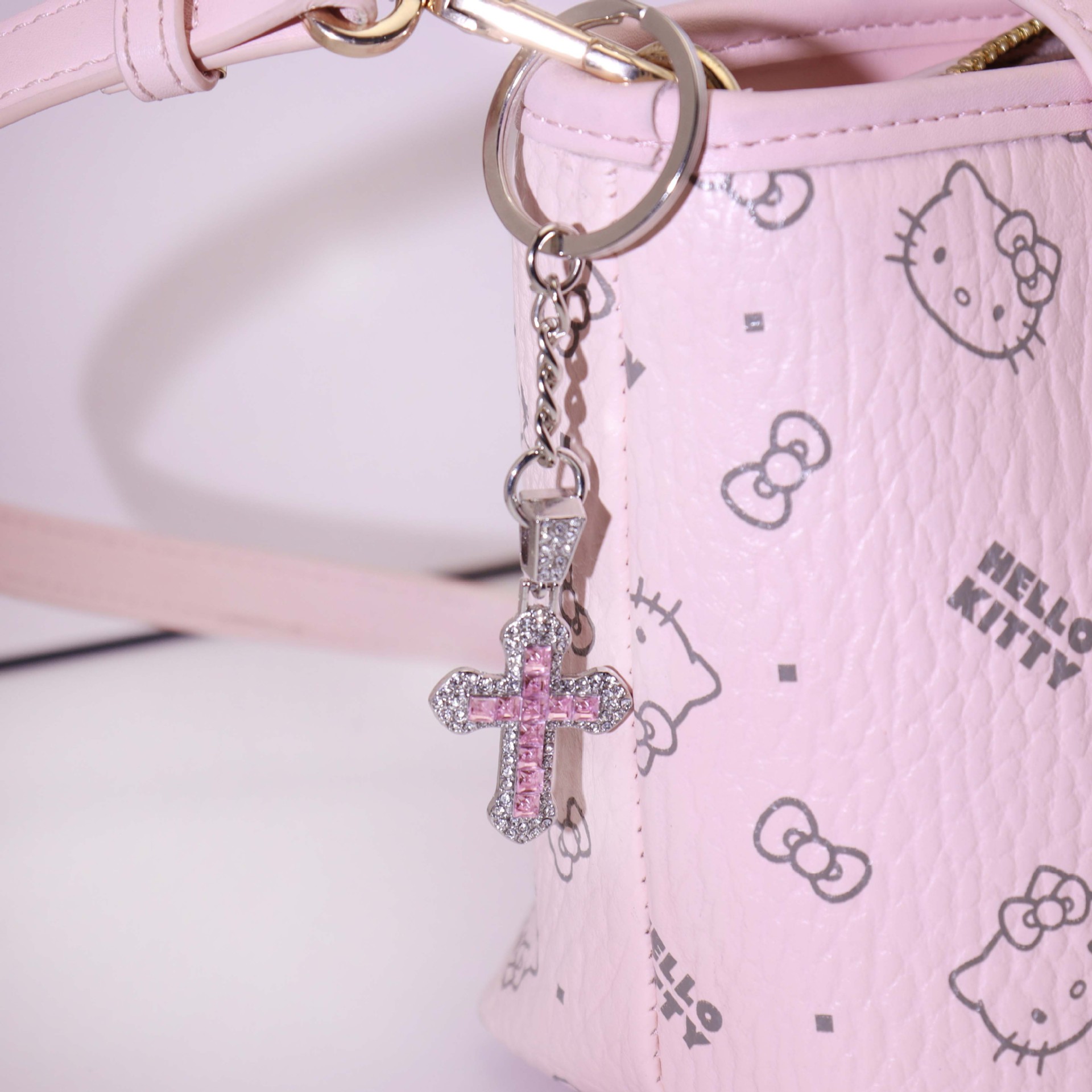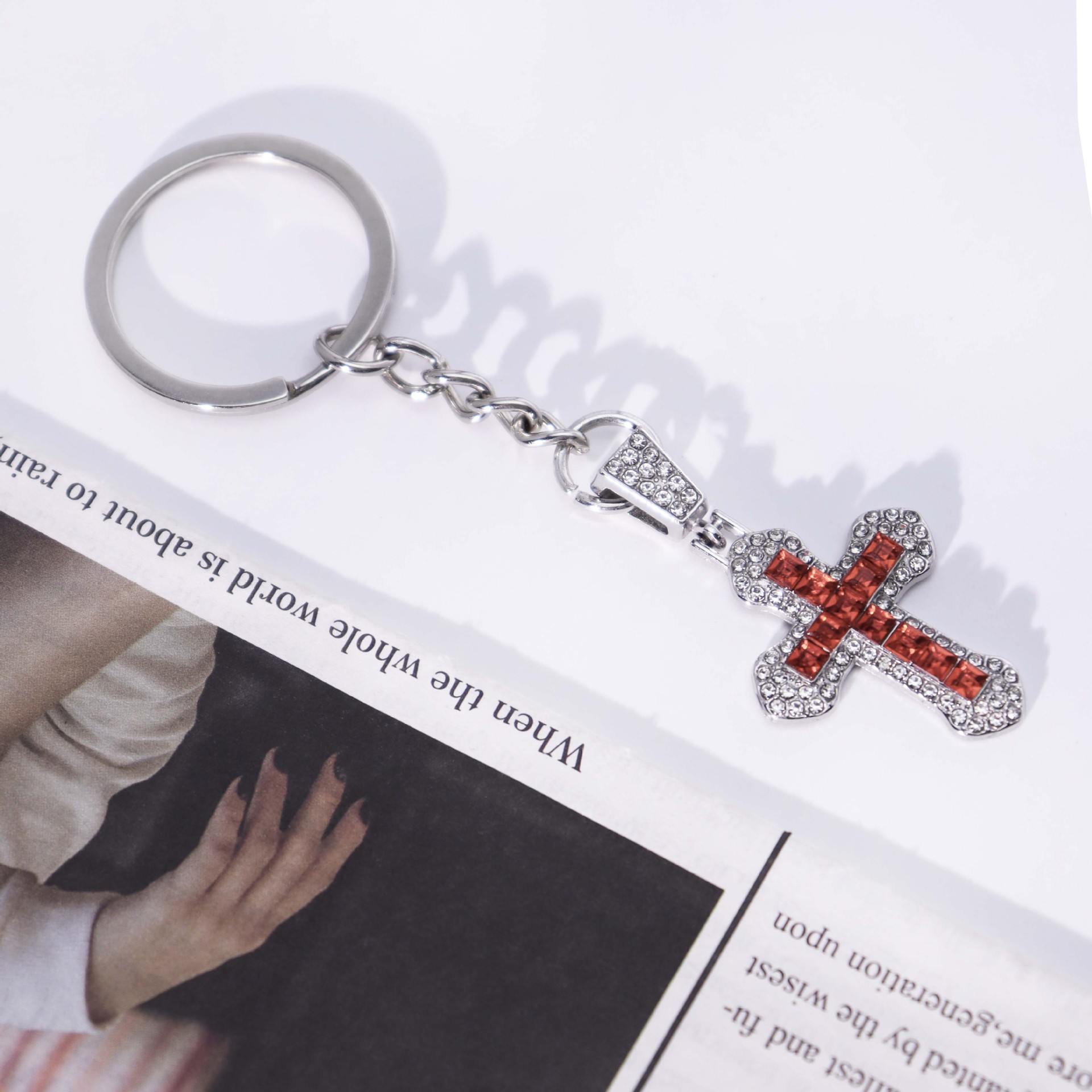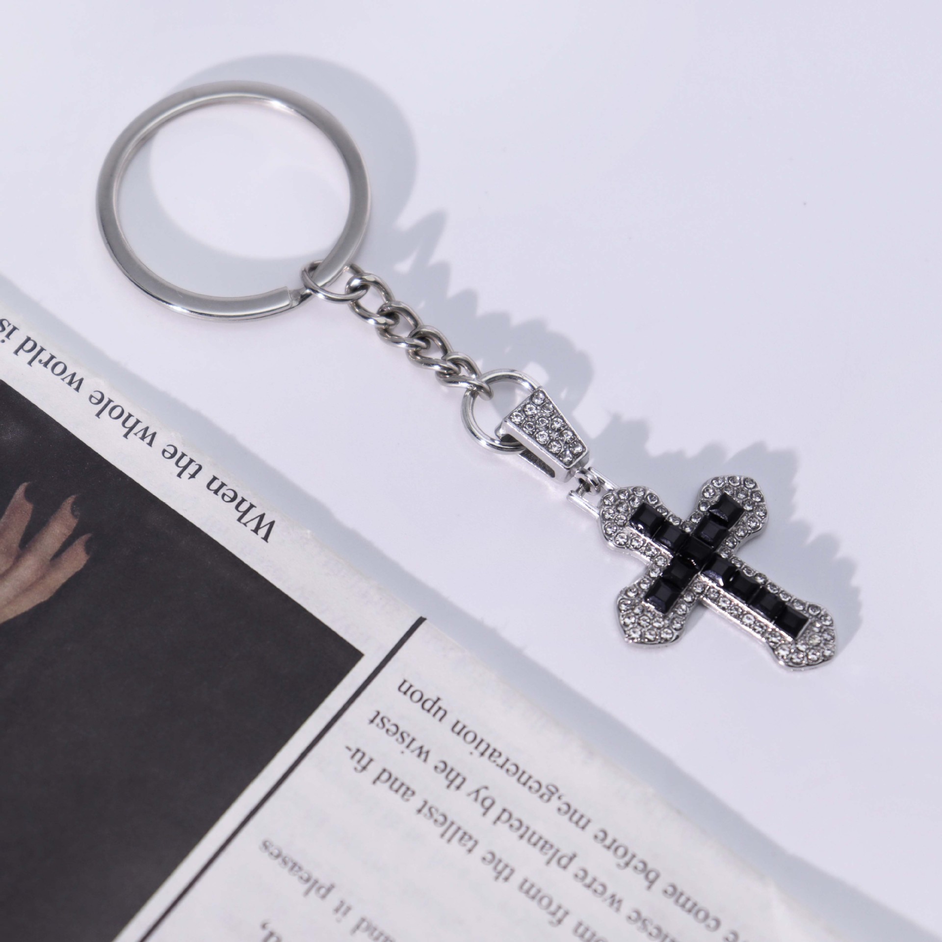 porte-clés en alliage zinc à stras, alliage de zinc, croix, Placage de couleur d'or, bijoux de mode, plus de couleurs à choisir, Vendu par PC