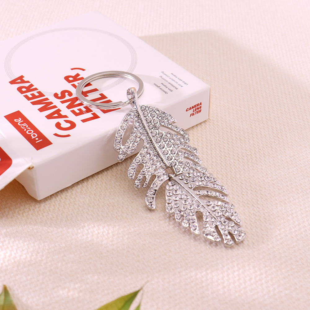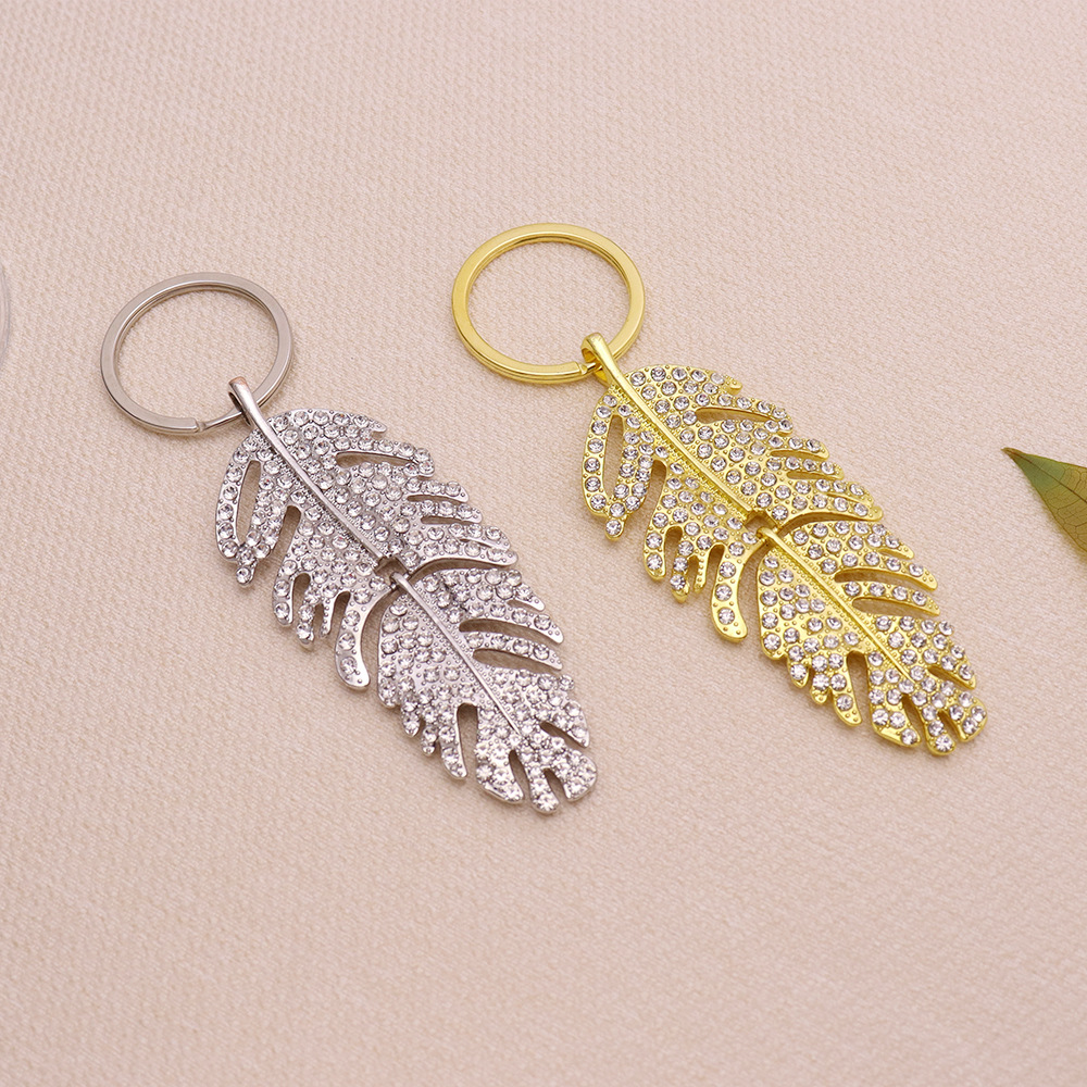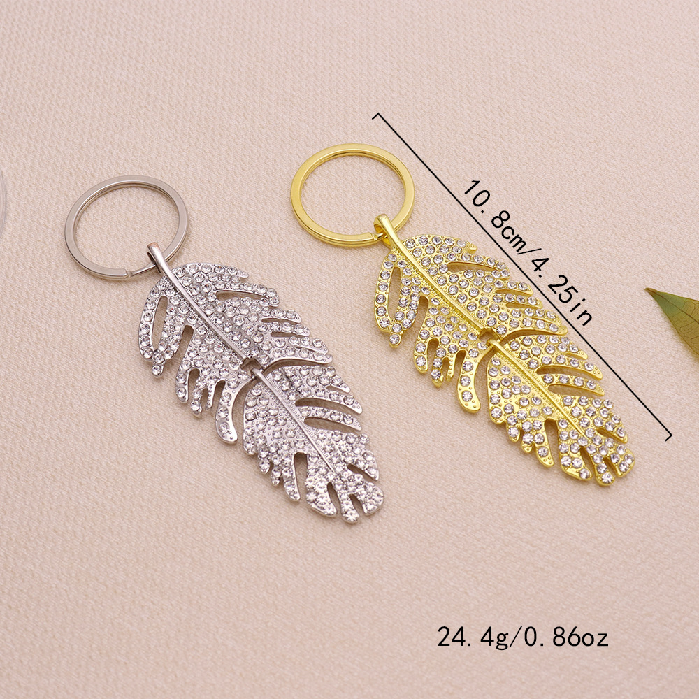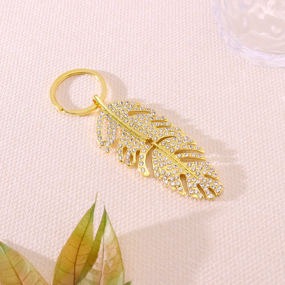 porte-clés en alliage zinc à stras, alliage de zinc, forme de plume, Placage de couleur d'or, bijoux de mode & avec strass, plus de couleurs à choisir, Vendu par PC