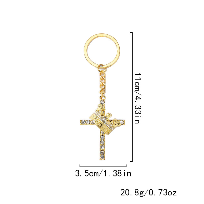 porte-clés en alliage zinc à stras, alliage de zinc, croix, Placage de couleur d'or, bijoux de mode & avec strass, plus de couleurs à choisir, Vendu par PC