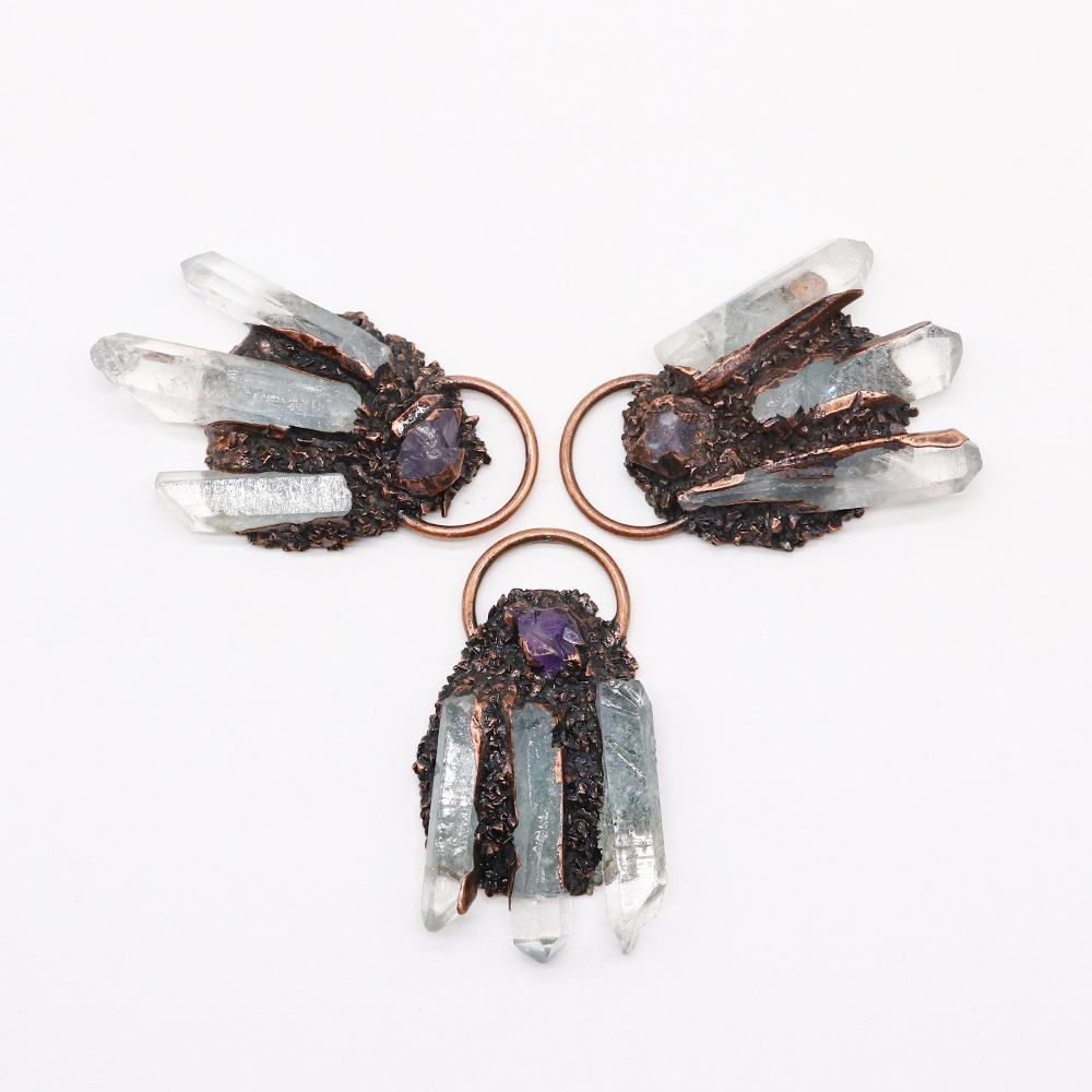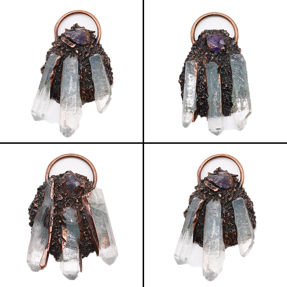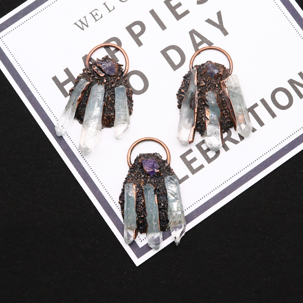 quartz clair Pendentif, avec améthyste & laiton, Placage, DIY, couleurs mélangées, 30-55mm, Vendu par PC