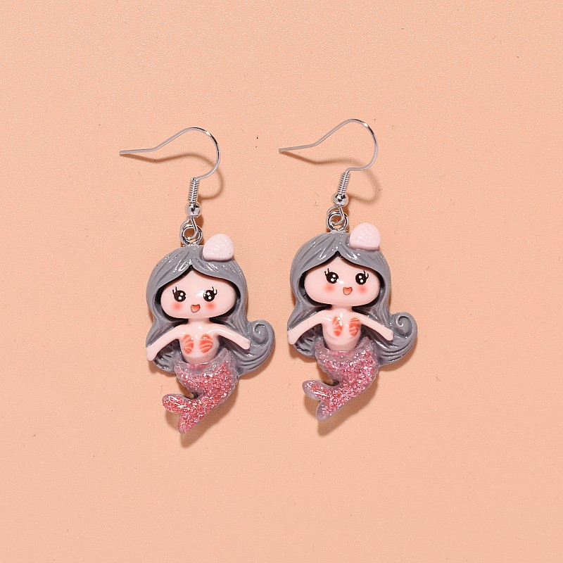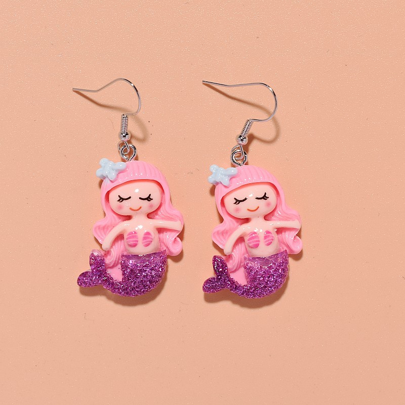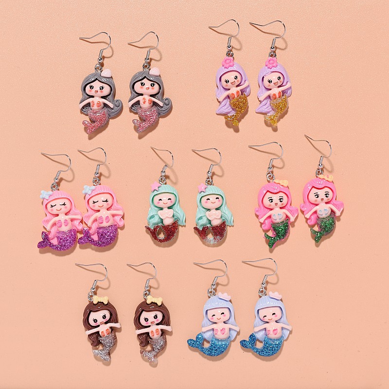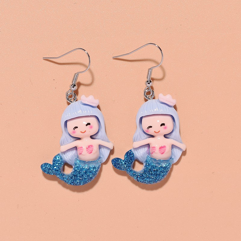 résine Boucle d'oreille goutte, avec alliage de zinc, sirène, bijoux de mode & pour femme, plus de couleurs à choisir, 25x65mm, Vendu par paire