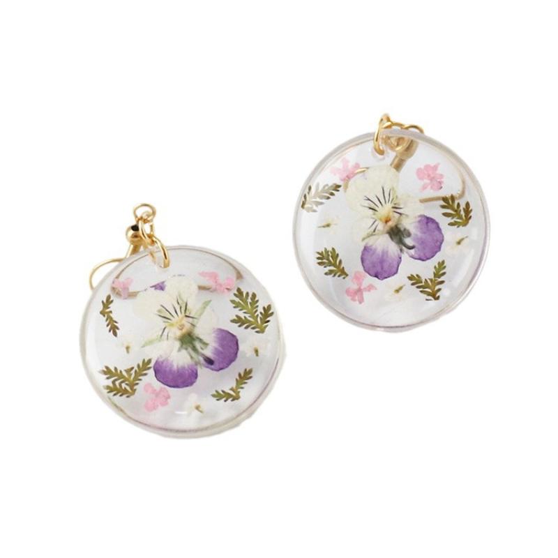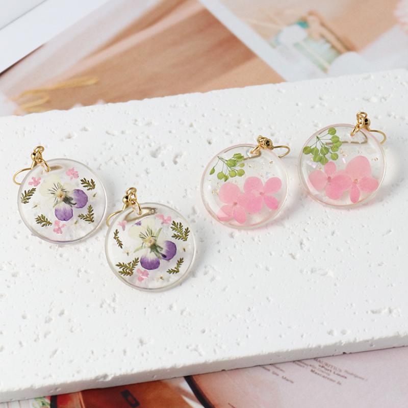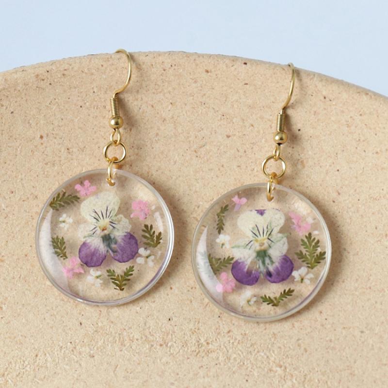 résine Boucle d'oreille goutte, avec Fleurs séchées & Acier inoxydable 304, Plat rond, goutté d'époxy, bijoux de mode & pour femme, plus de couleurs à choisir, 27x50x4mm, Vendu par paire