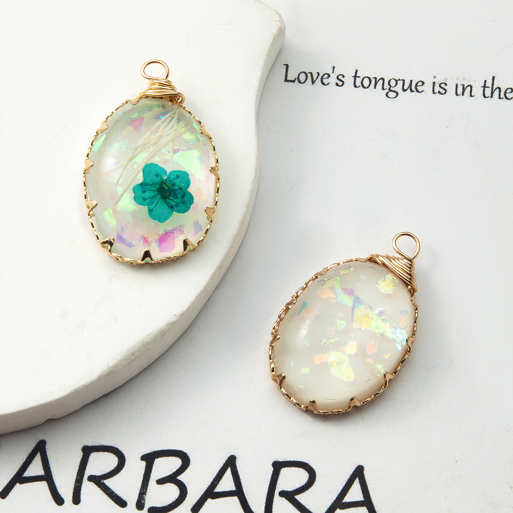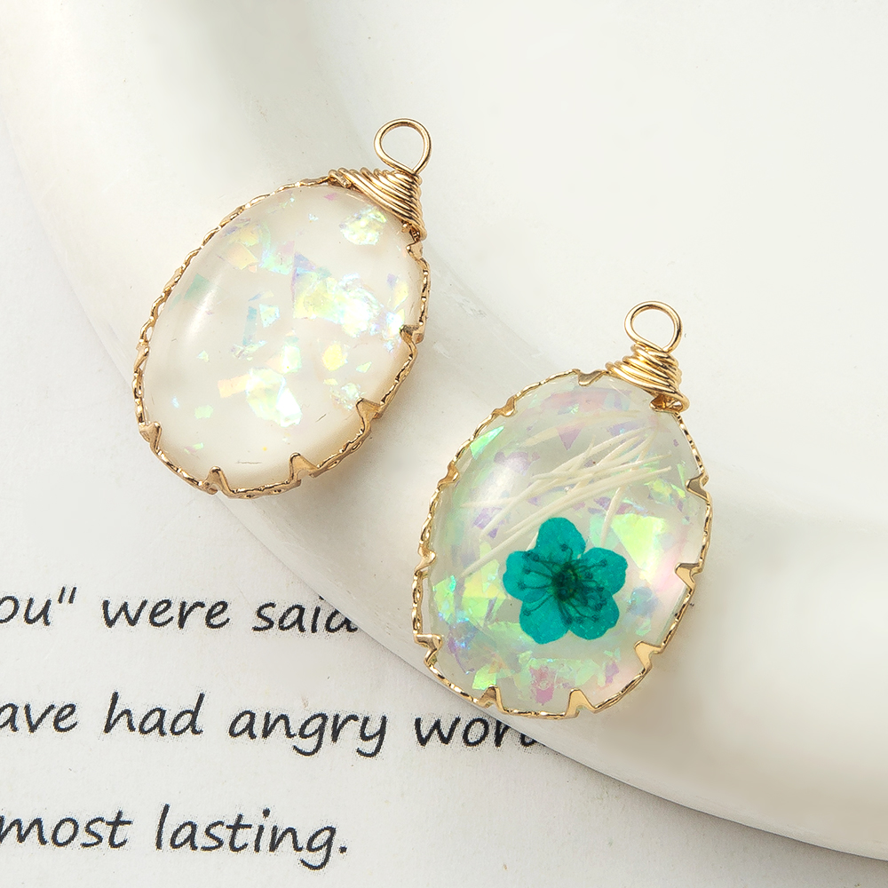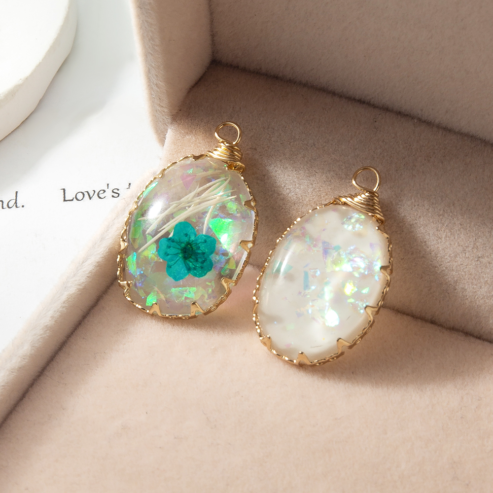 résine Pendentif, avec Fleurs séchées & laiton, Placage, DIY, plus de couleurs à choisir, 17.2x6x27.2mm, Vendu par PC