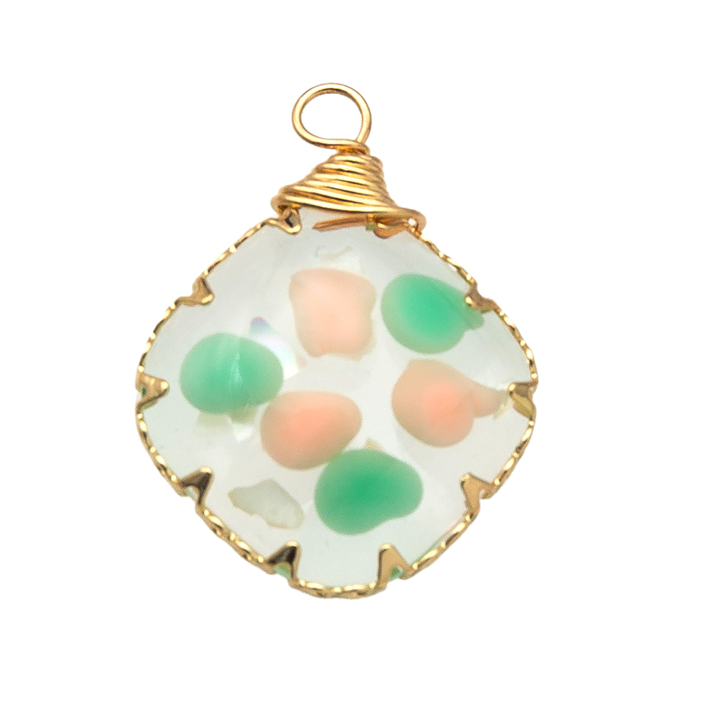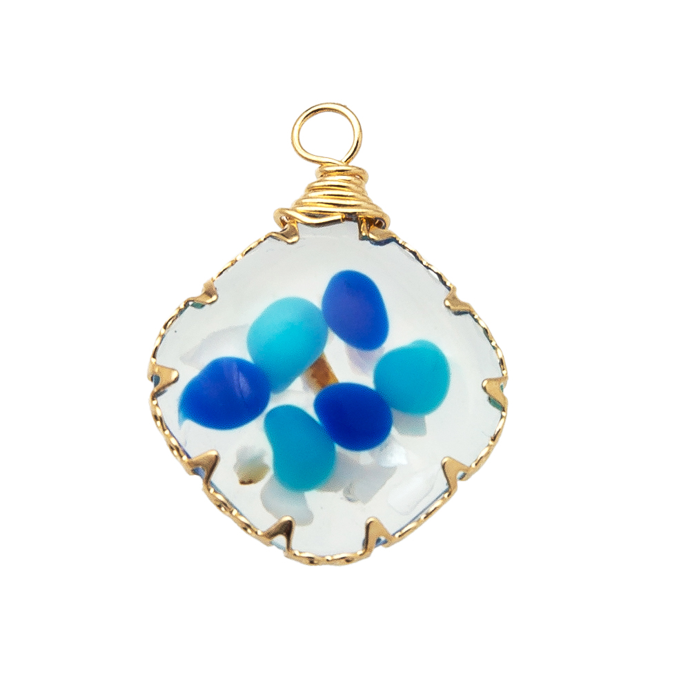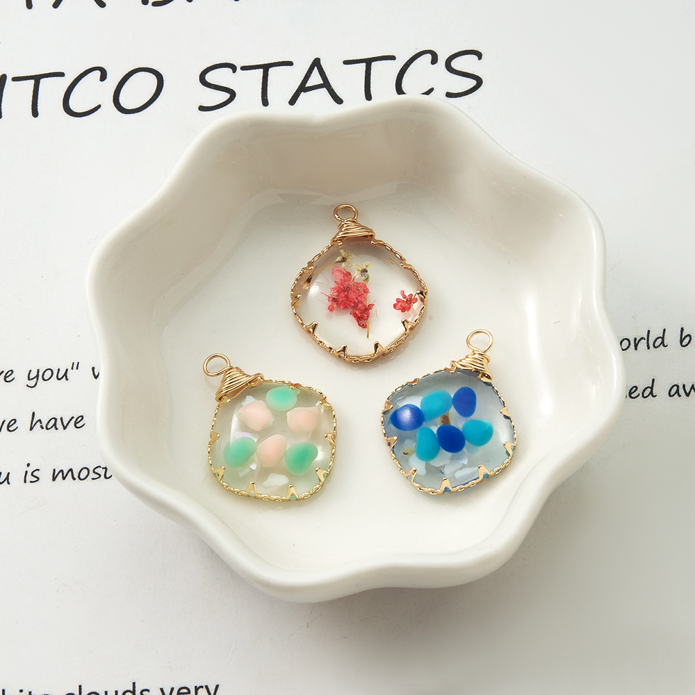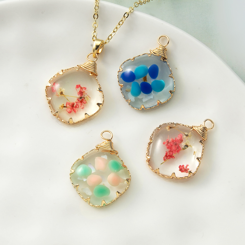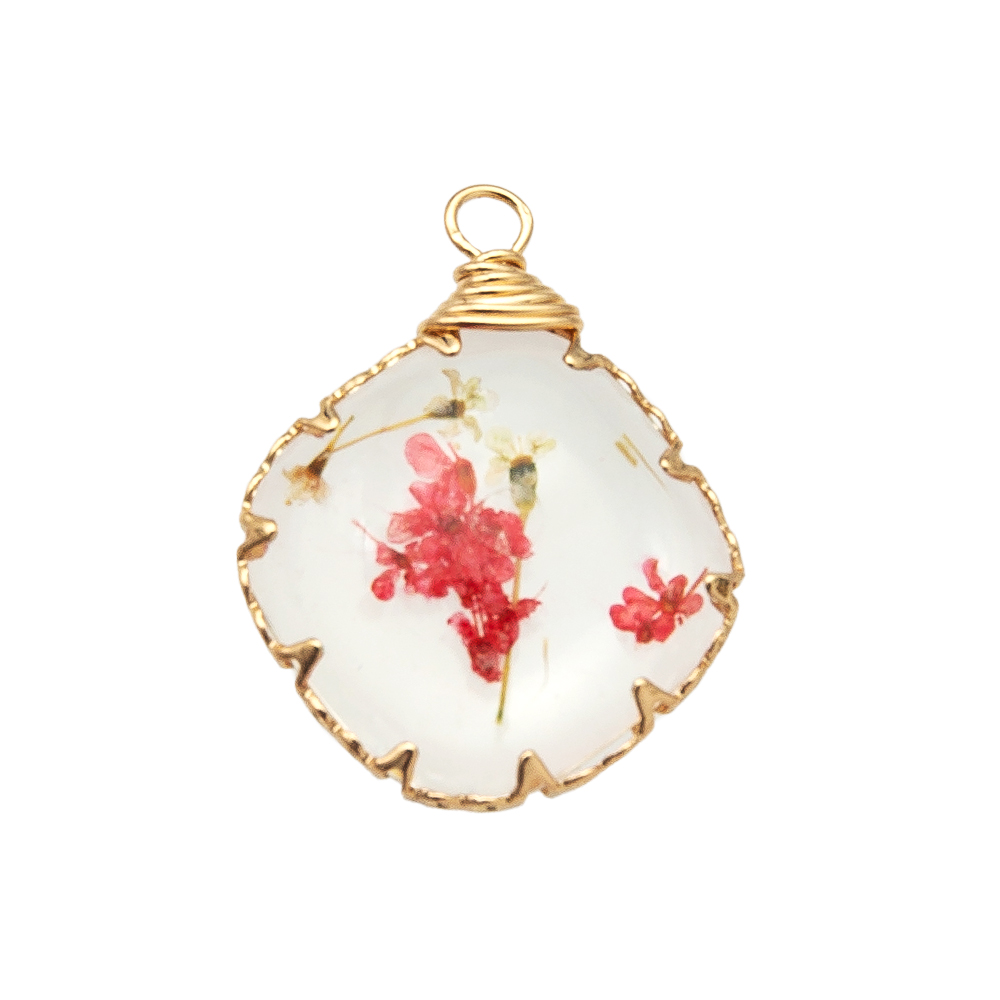 résine Pendentif, avec Fleurs séchées & laiton, Placage, DIY, plus de couleurs à choisir, 18.9x5.2x24.9mm, Vendu par PC