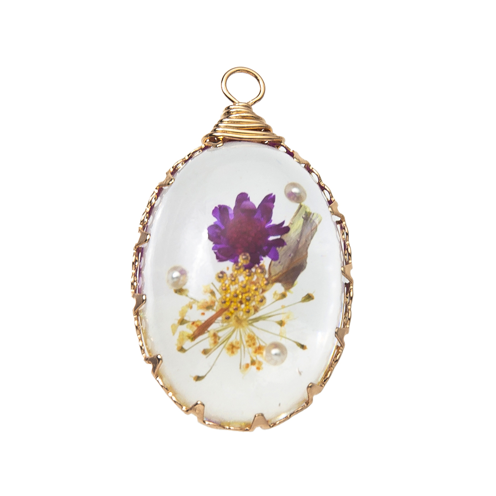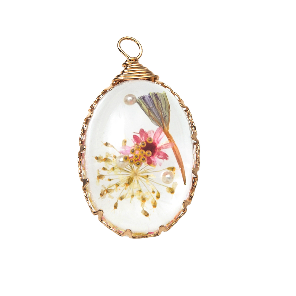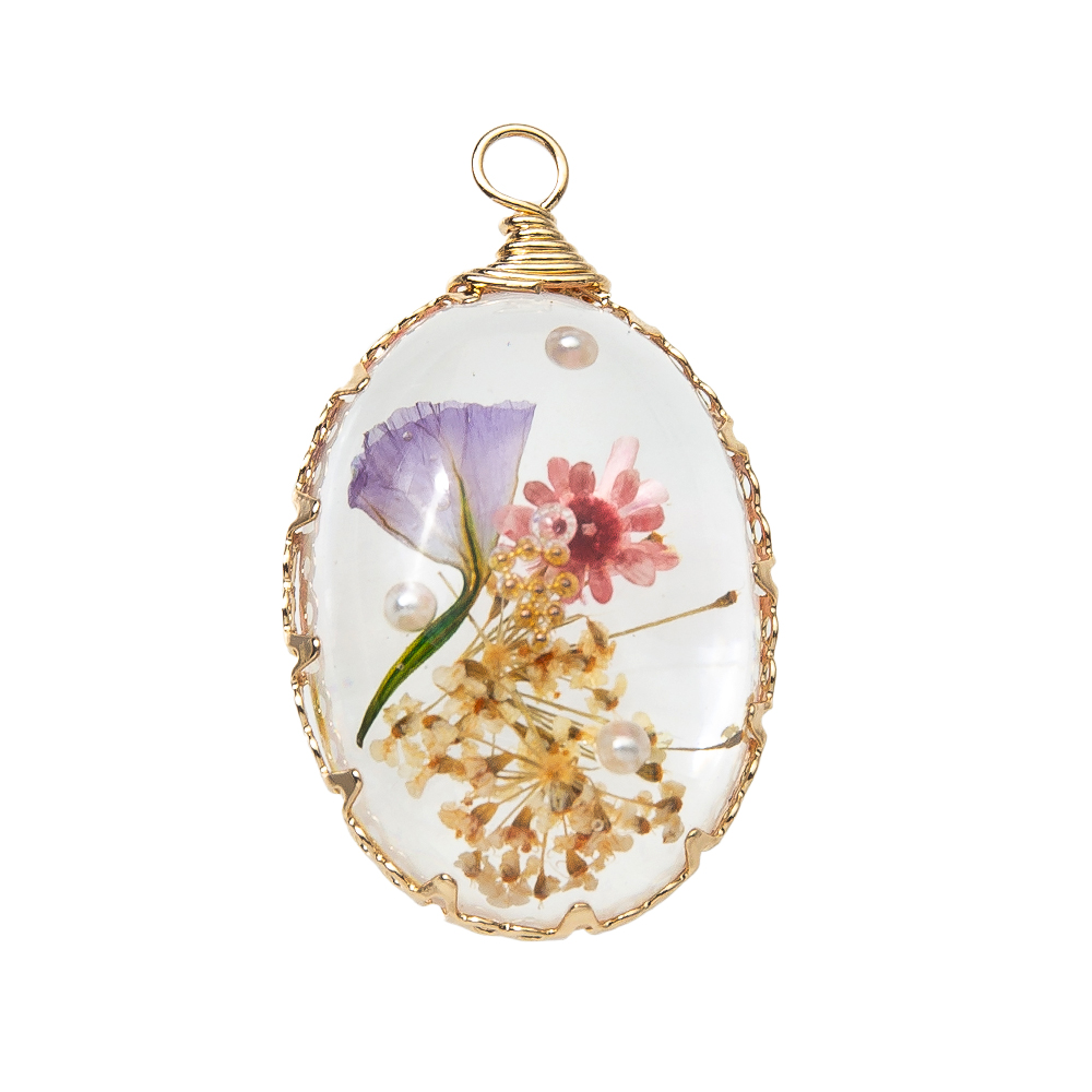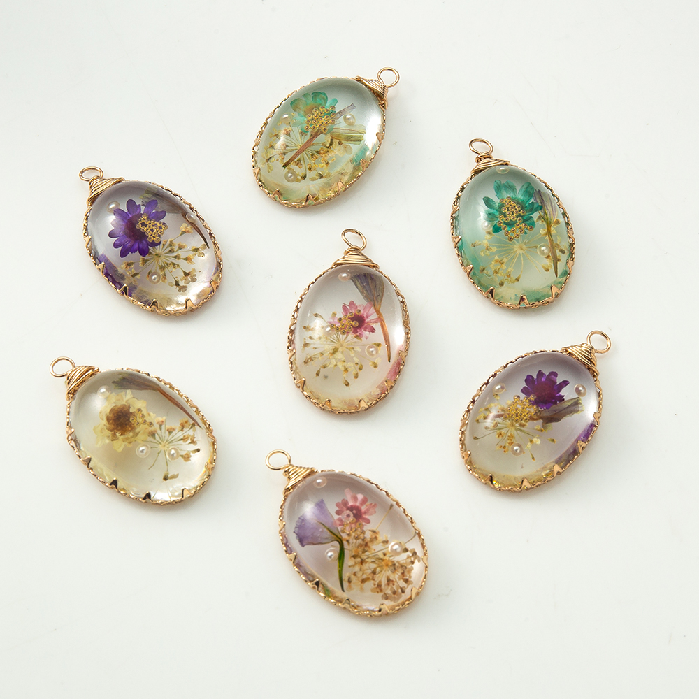 résine Pendentif, avec Fleurs séchées & laiton, Placage, DIY & perle d'imitation, plus de couleurs à choisir, 18.8x8.6x31mm, Vendu par PC