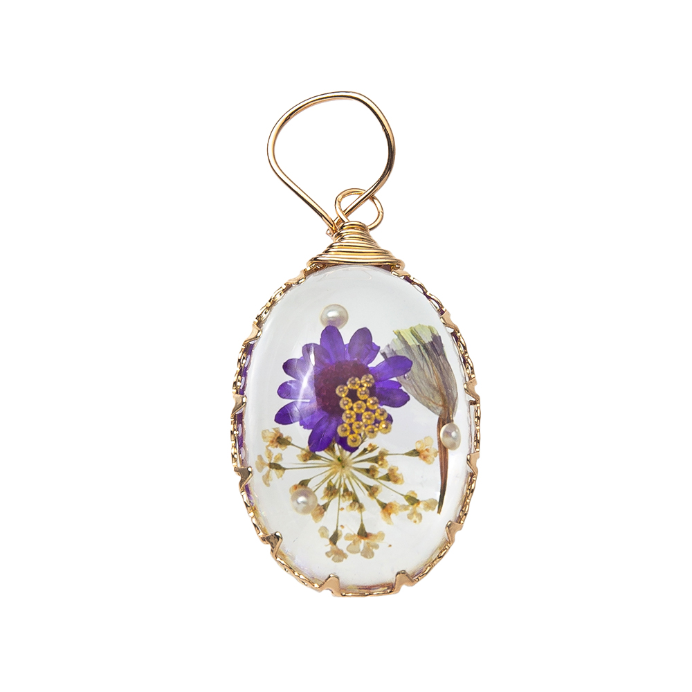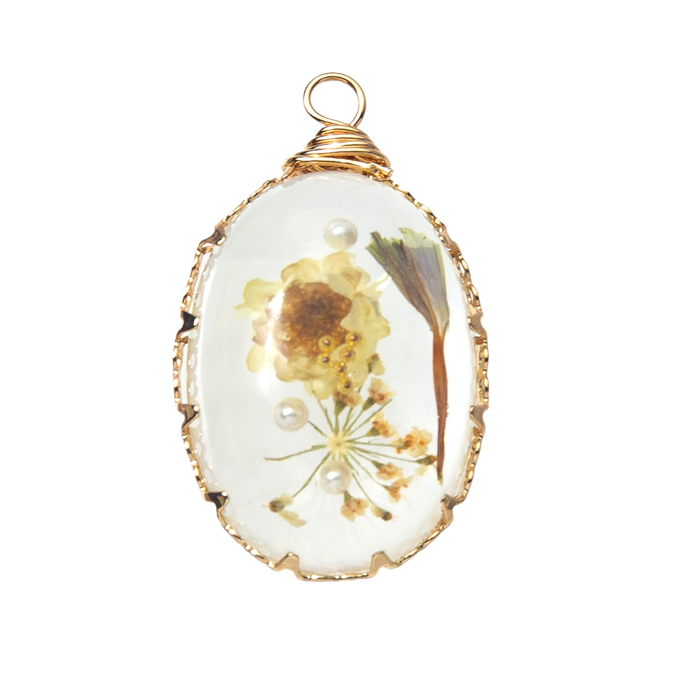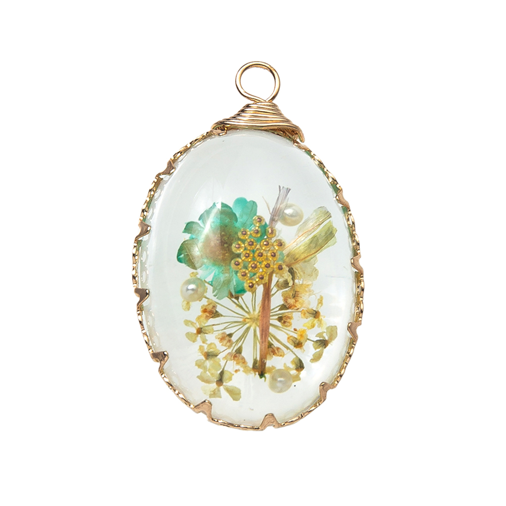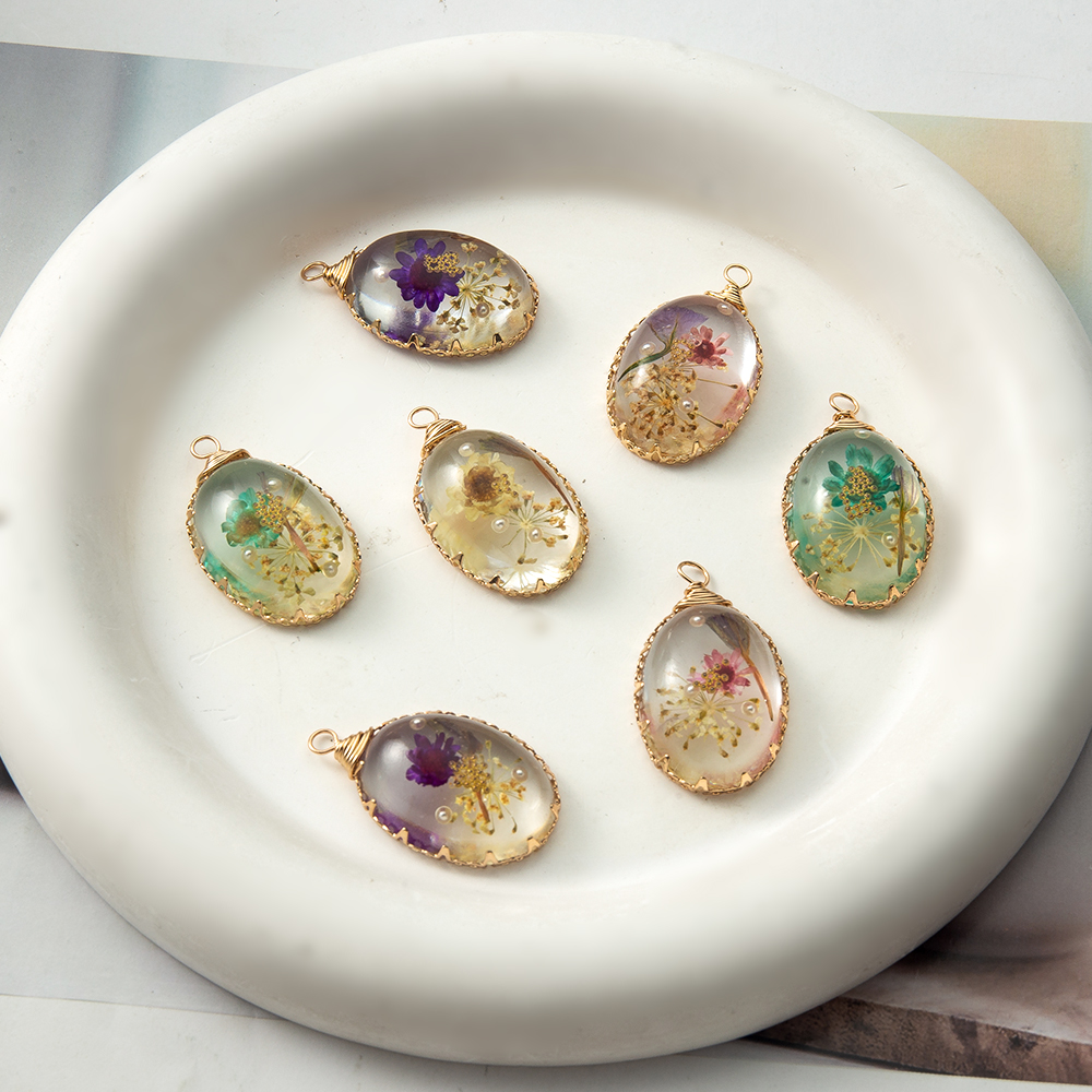 résine Pendentif, avec Fleurs séchées & laiton, Placage, DIY & perle d'imitation, plus de couleurs à choisir, 18.8x8.6x31mm, Vendu par PC