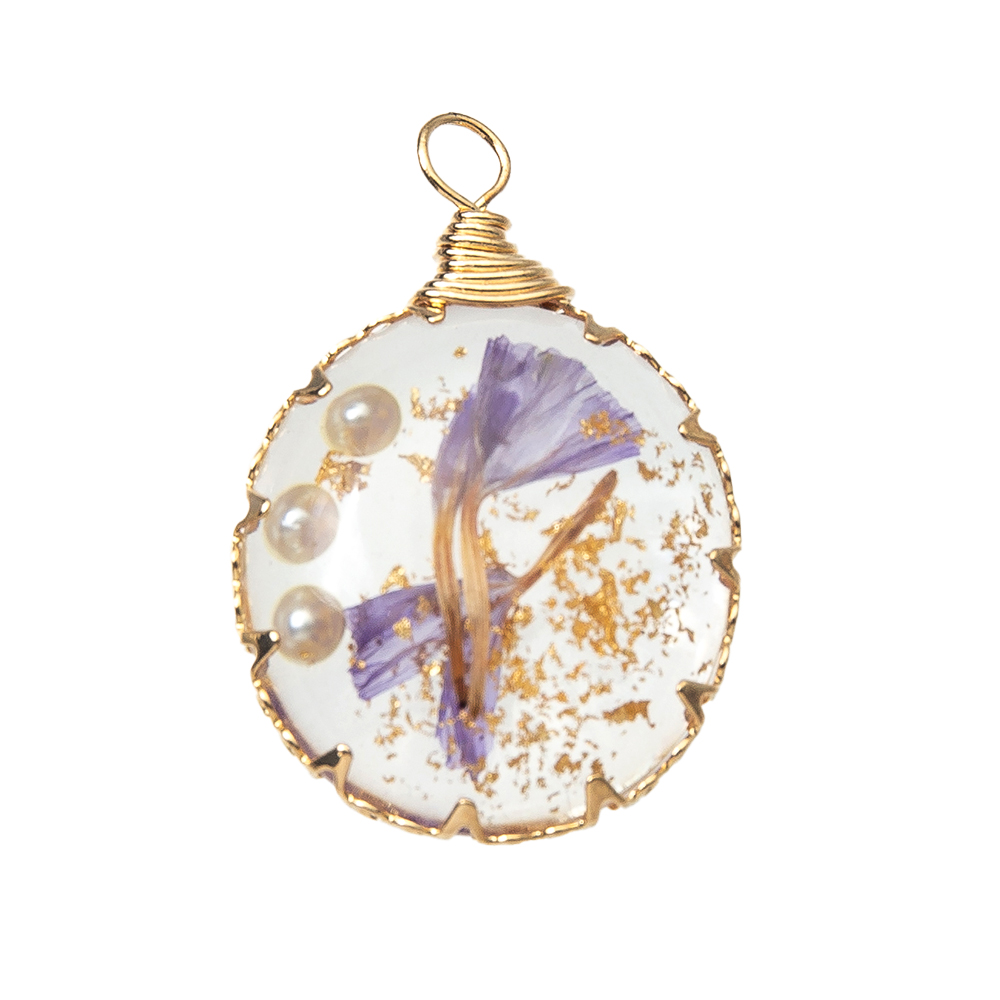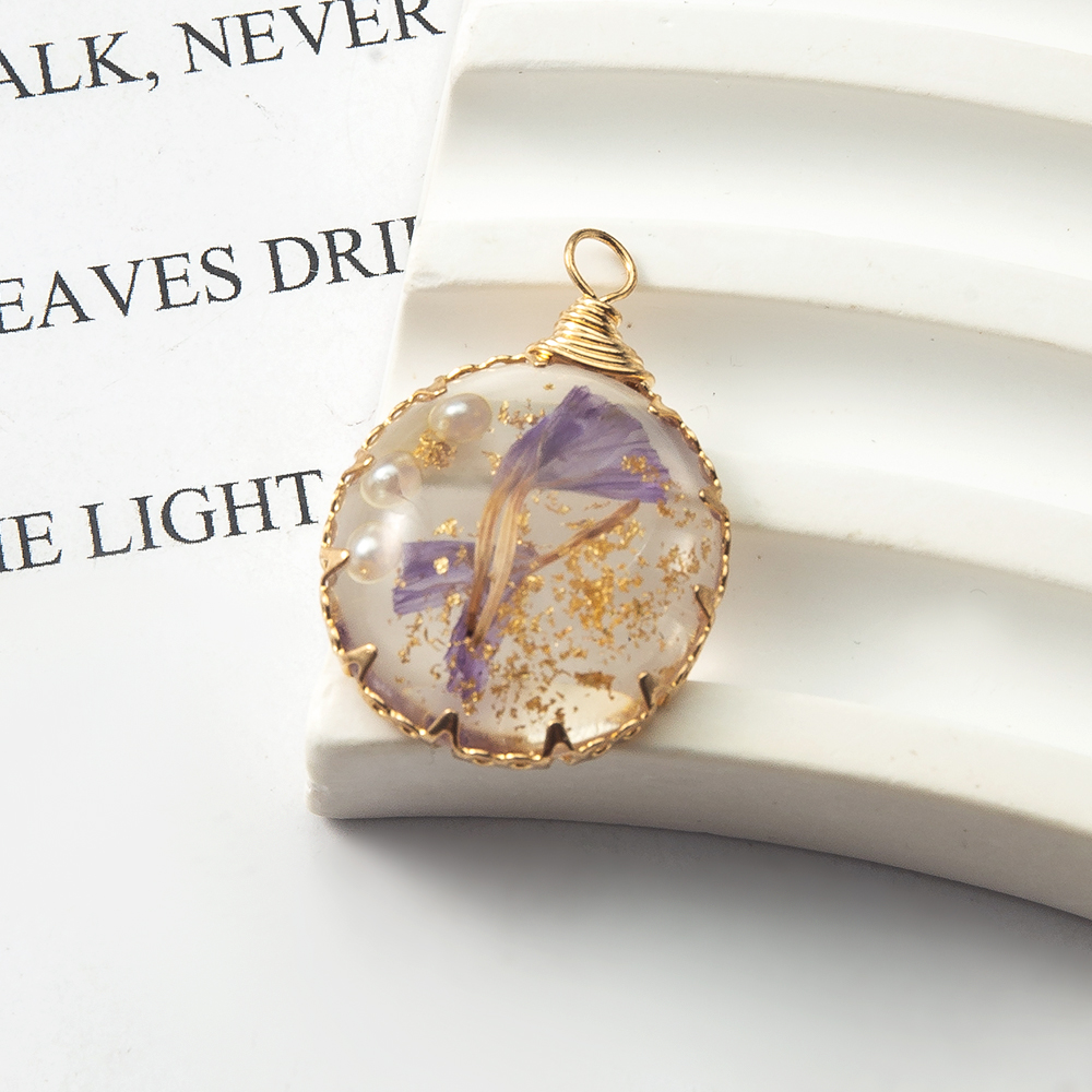 résine Pendentif, avec Fleurs séchées & laiton, Placage, DIY & perle d'imitation, plus de couleurs à choisir, 19.2x6.3x28.5mm, Vendu par PC