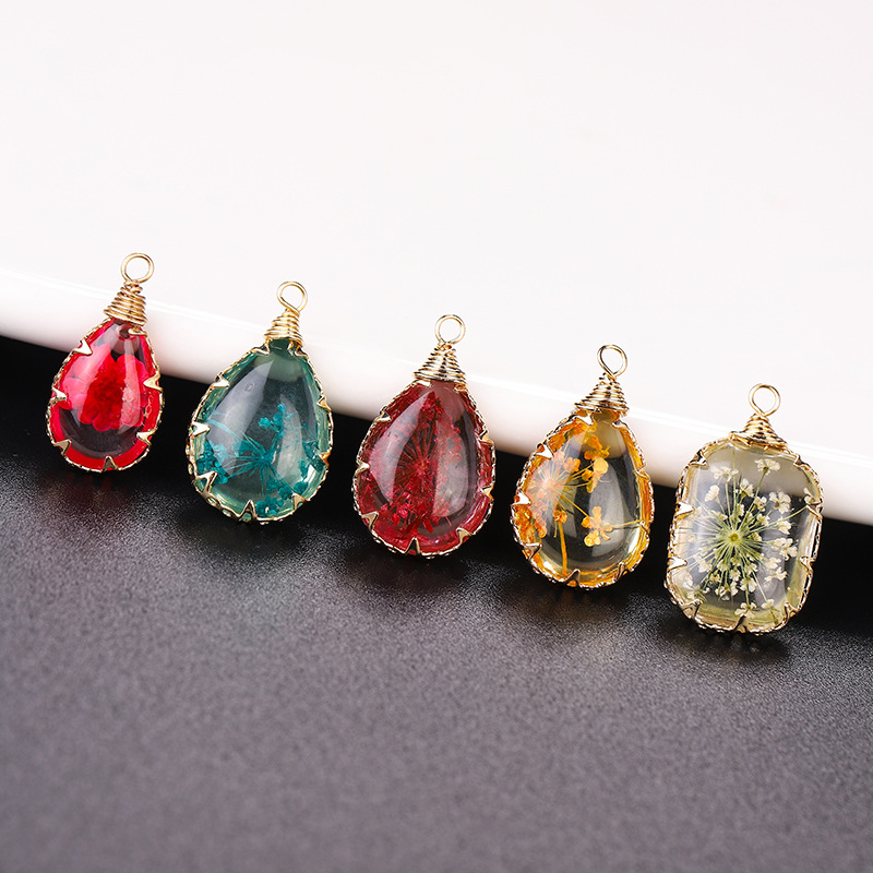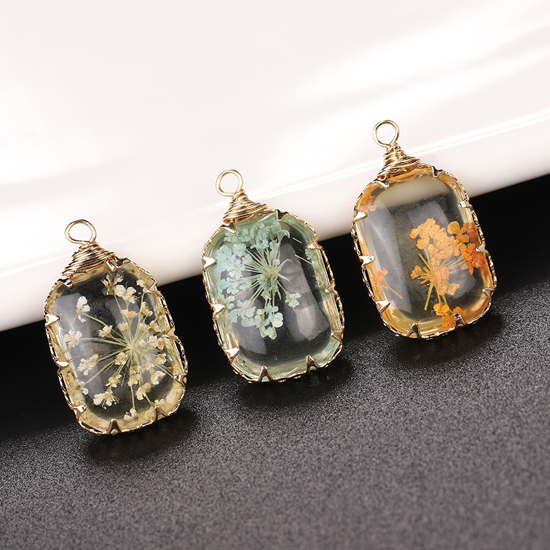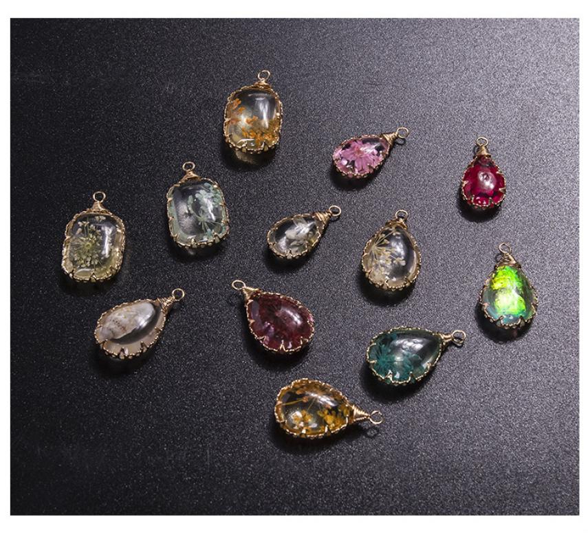 résine Pendentif, avec Fleurs séchées & laiton, Placage, DIY, plus de couleurs à choisir, 13x18mm, Vendu par PC