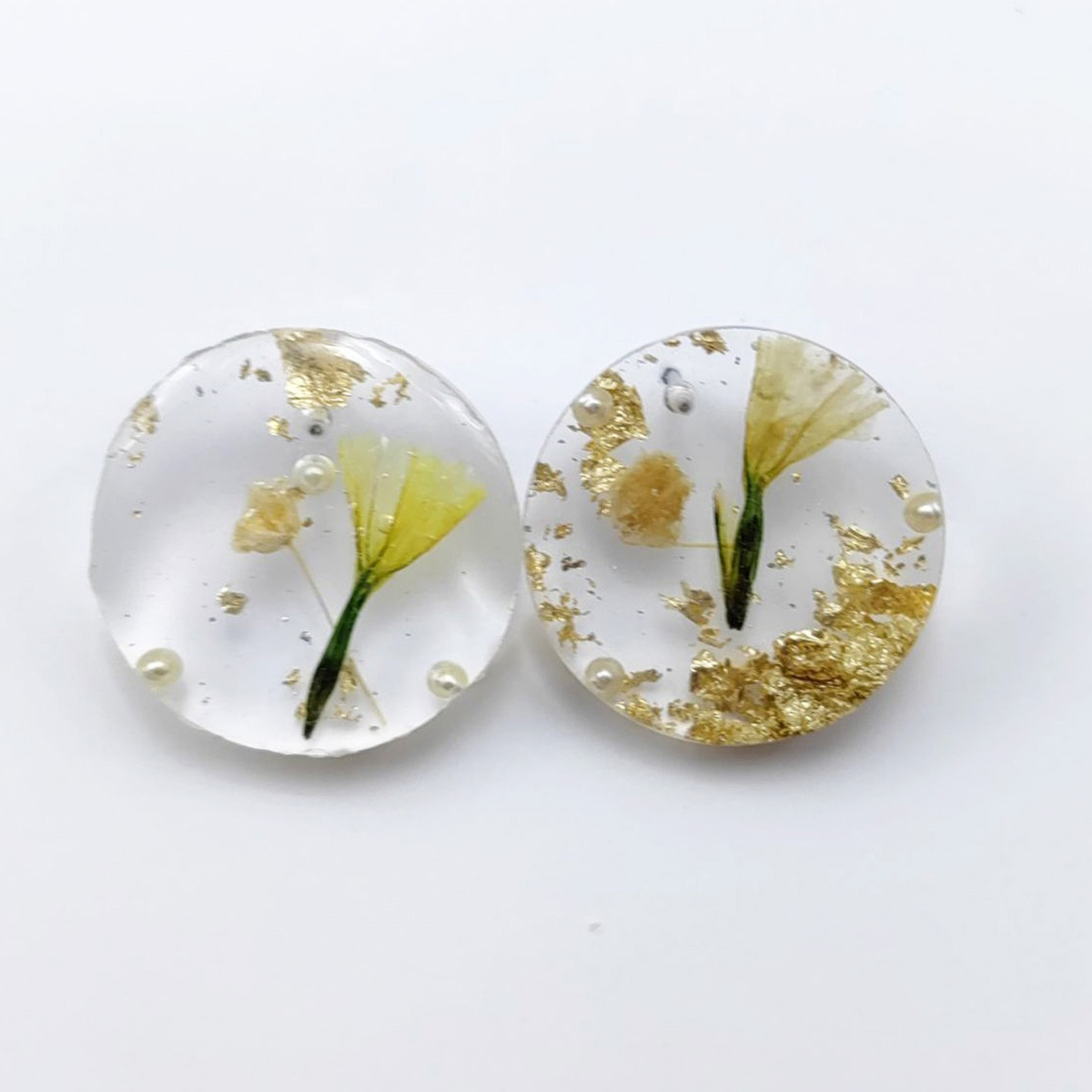 résine boucle d oreille dormeuse, avec Fleurs séchées, Rond, goutté d'époxy, bijoux de mode & pour femme, 20mm, Vendu par paire