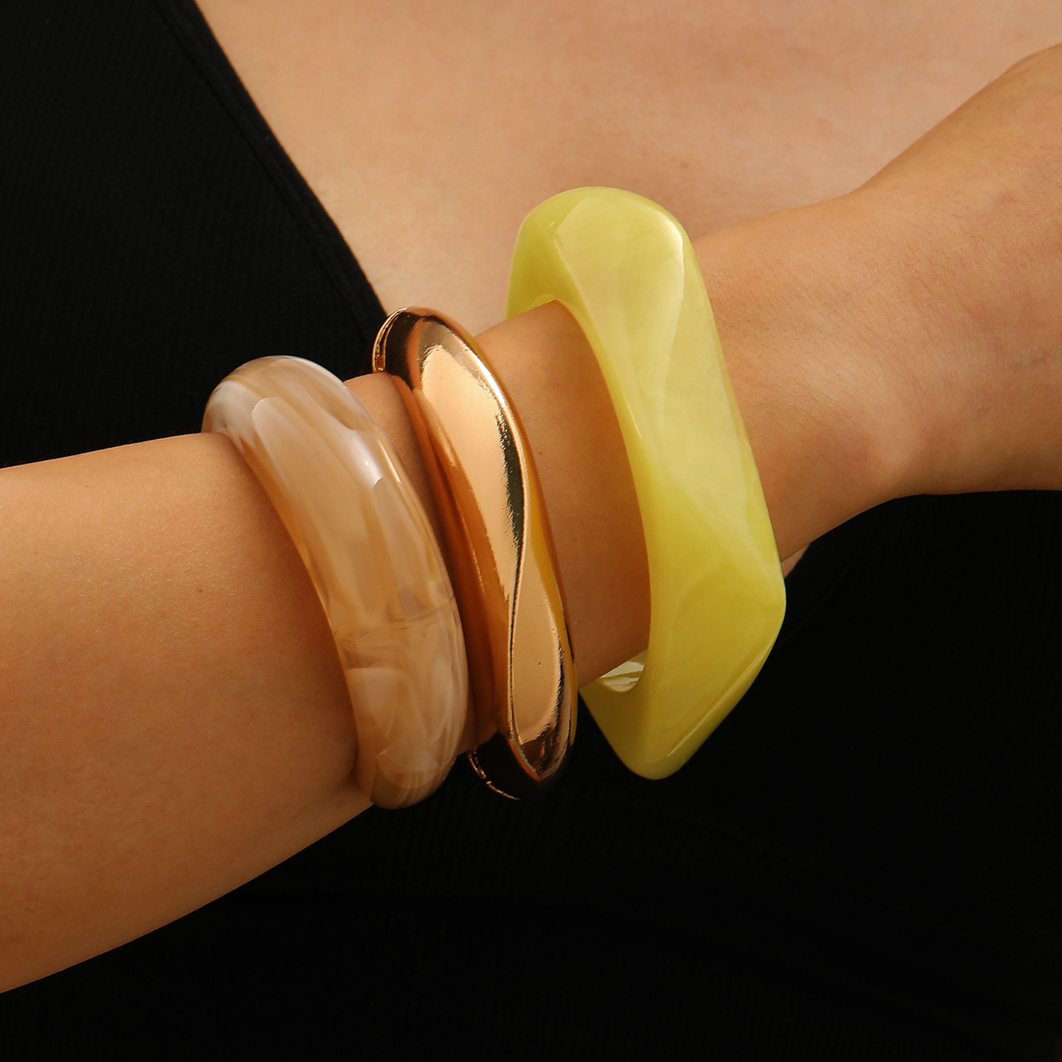 résine bracelet manchette, avec Acier inoxydable 304, Placage, bijoux de mode, plus de couleurs à choisir, Vendu par PC