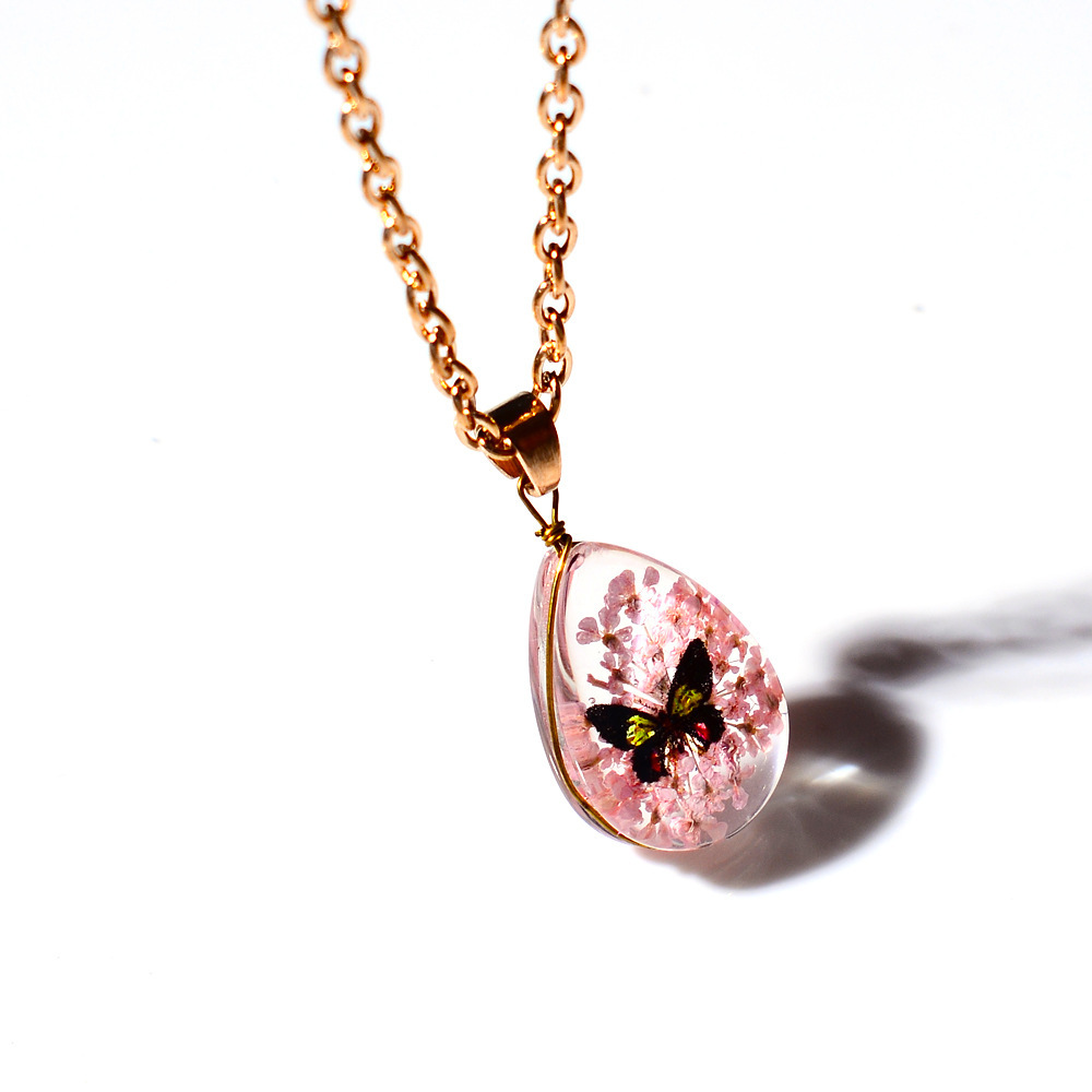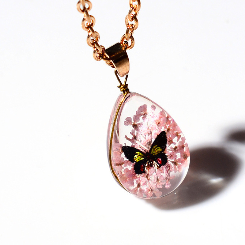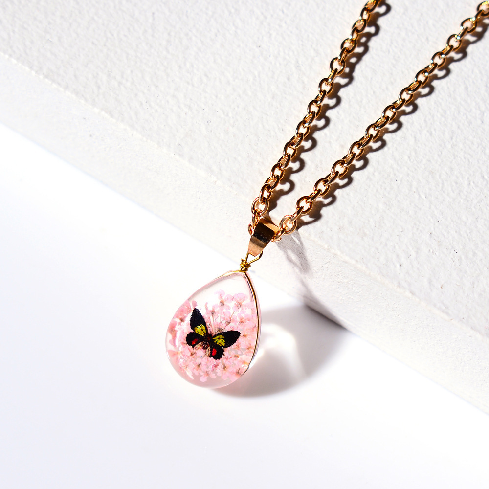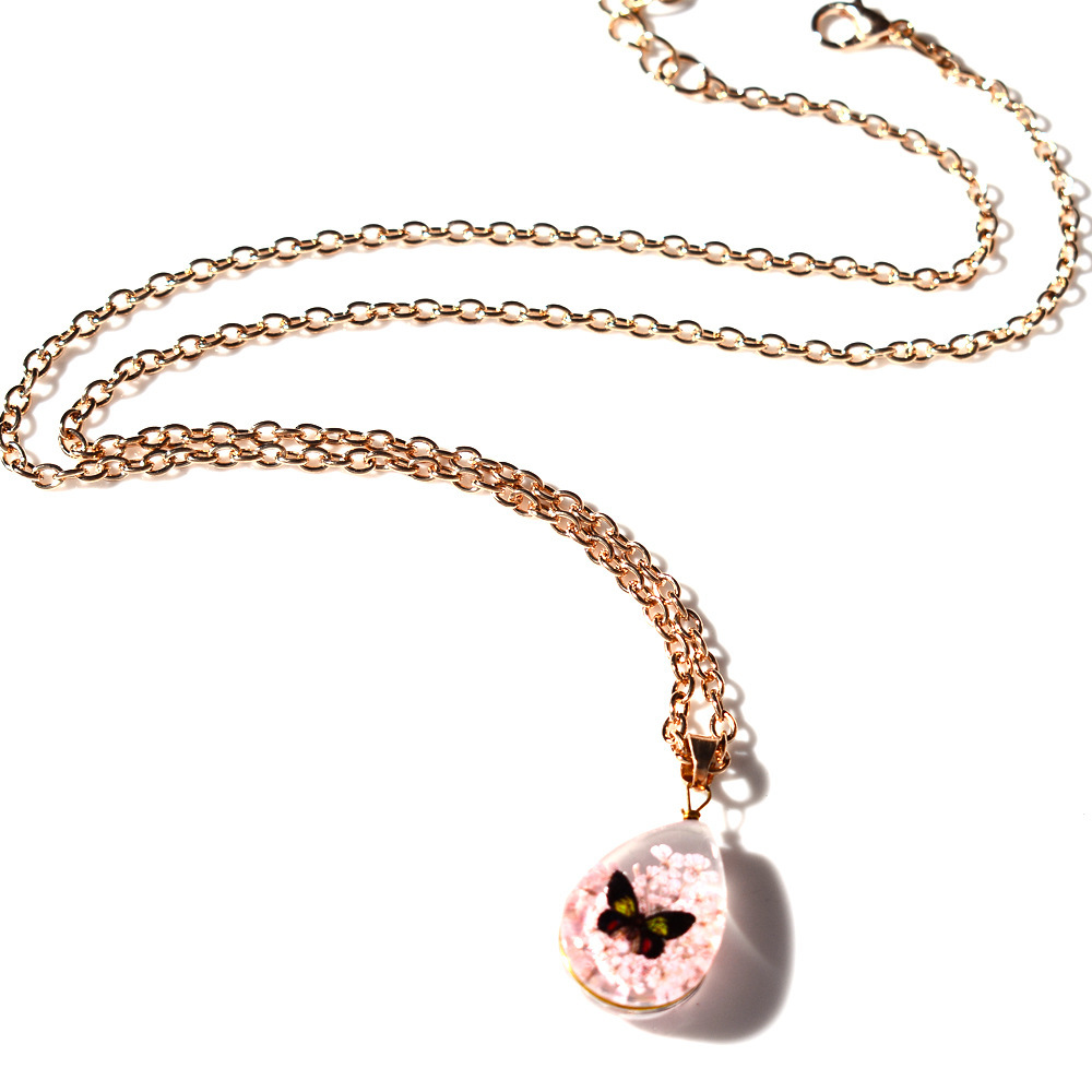 résine collier, avec Fleurs séchées & alliage de zinc, avec 2inch chaînes de rallonge, larme, Placage de couleur d'or, bijoux de mode & pour femme, Longueur:Environ 15.7 pouce, Vendu par PC