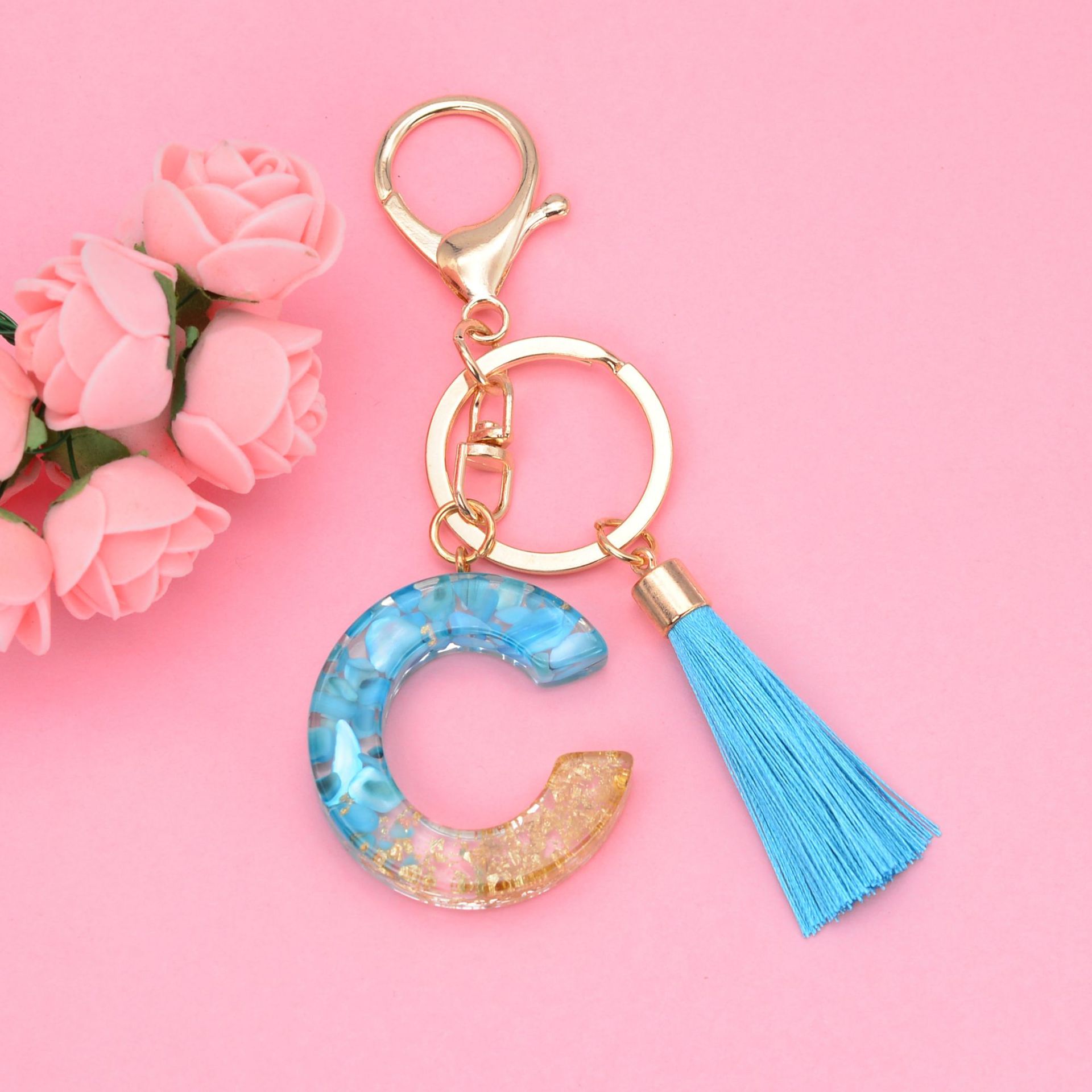 résine fermoir à clé, avec alliage de zinc, Lettre d’alphabet, goutté d'époxy, unisexe & styles différents pour le choix, bleu, 115mm, Vendu par PC