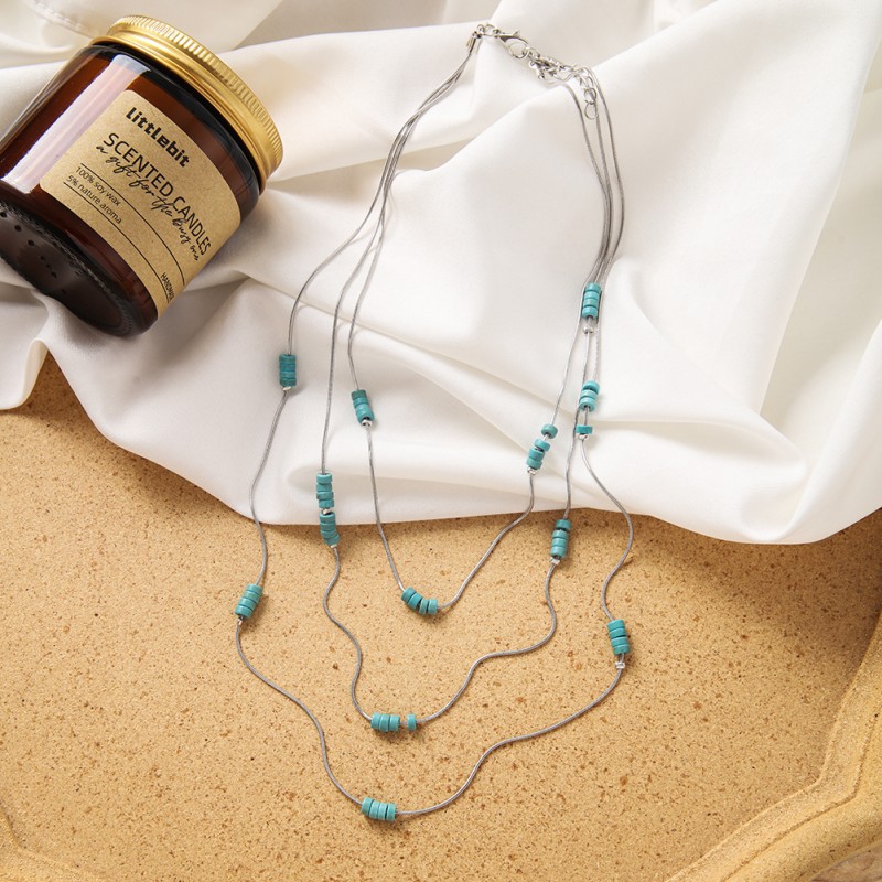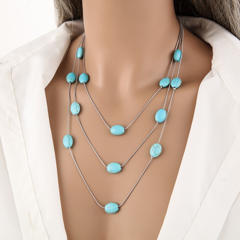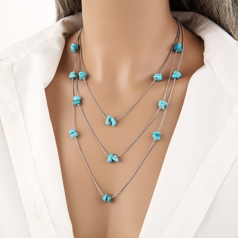 turquoise synthétique collier, avec alliage de zinc, avec 2inch chaînes de rallonge, multicouche & styles différents pour le choix & pour femme, Longueur:Environ 15.7 pouce, Environ 18.1 pouce, Environ 21.7 pouce, Vendu par PC