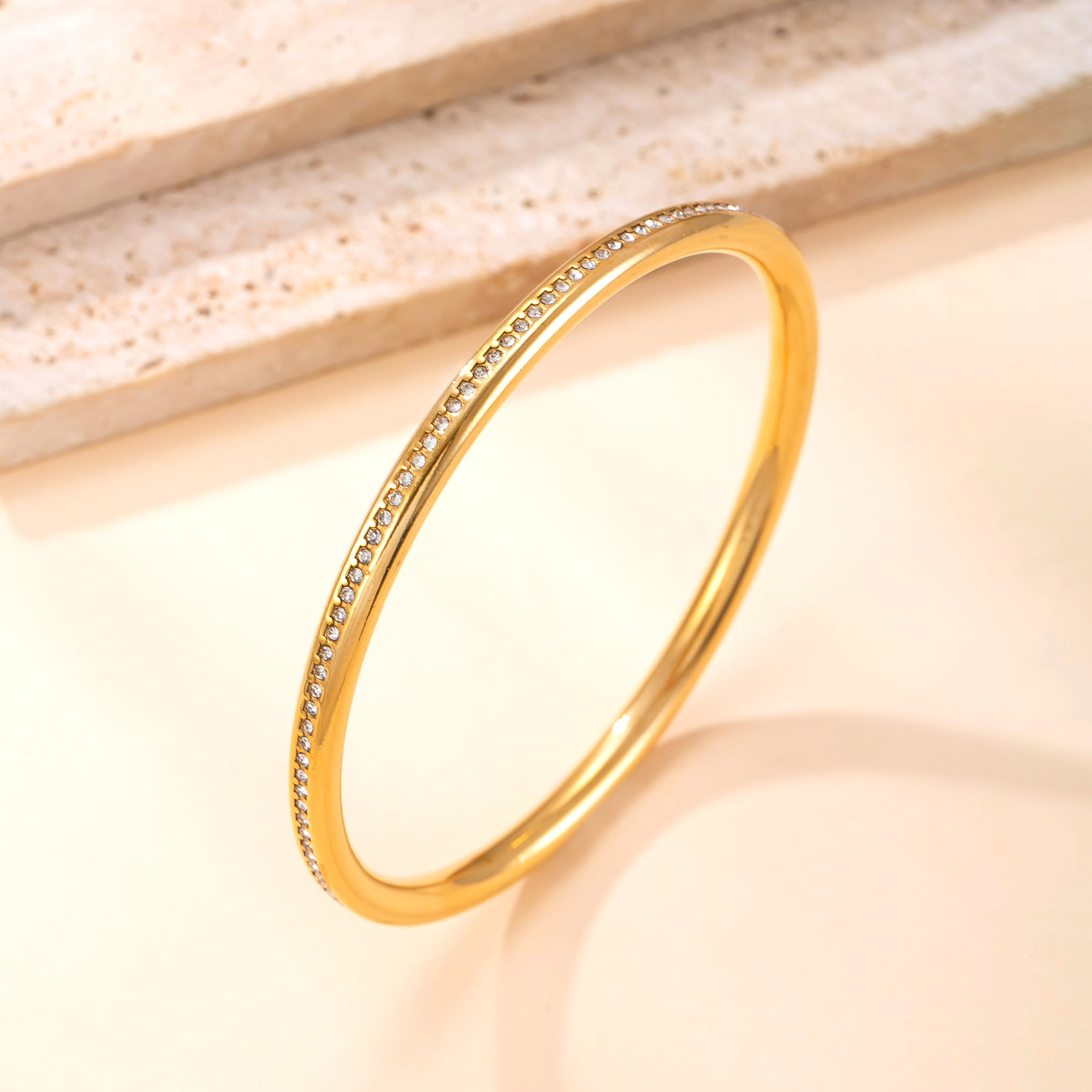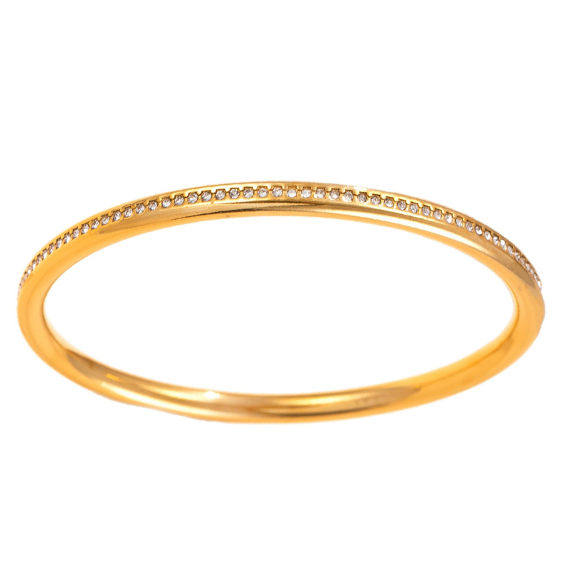 304ステンレススチール ブレスレット, ゴールドメッキ, 女性用 & ライン石のある, width 5mm, 内径:約 68mm, 10パソコン/ロト, 売り手 ロト