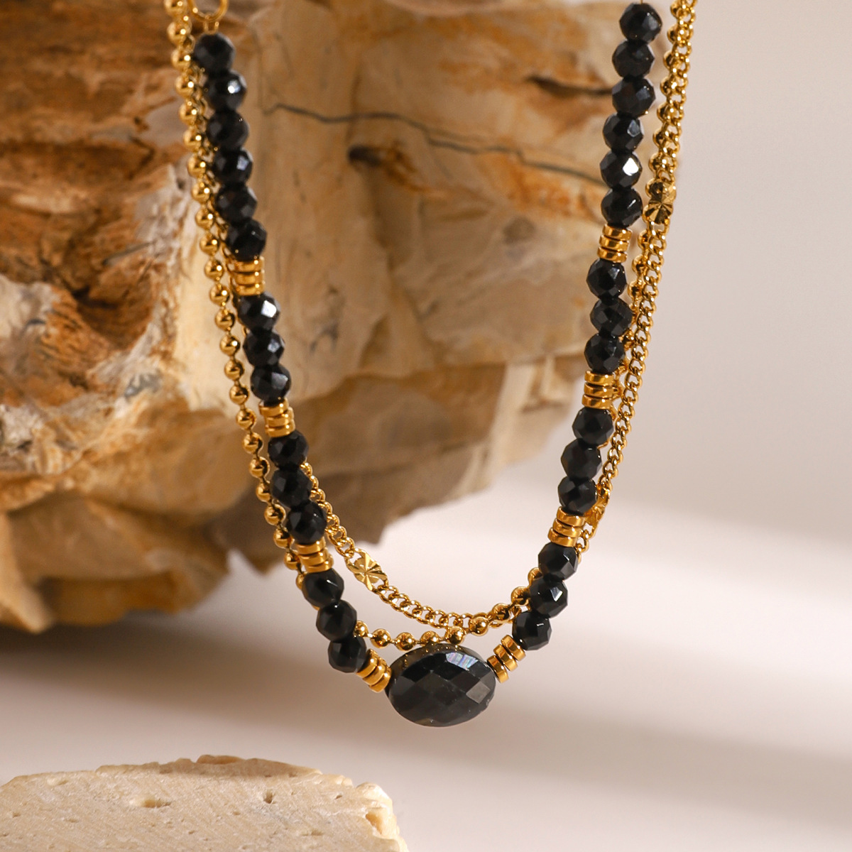 304ステンレススチール ネックレス, とともに 天然クォーツ, 18Kゴールドメッキ, ダブルレイヤー & ファッションジュエリー & 女性用, 売り手 パソコン