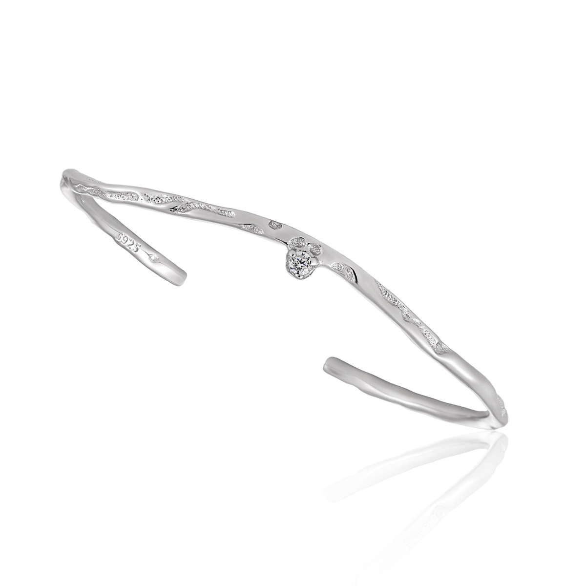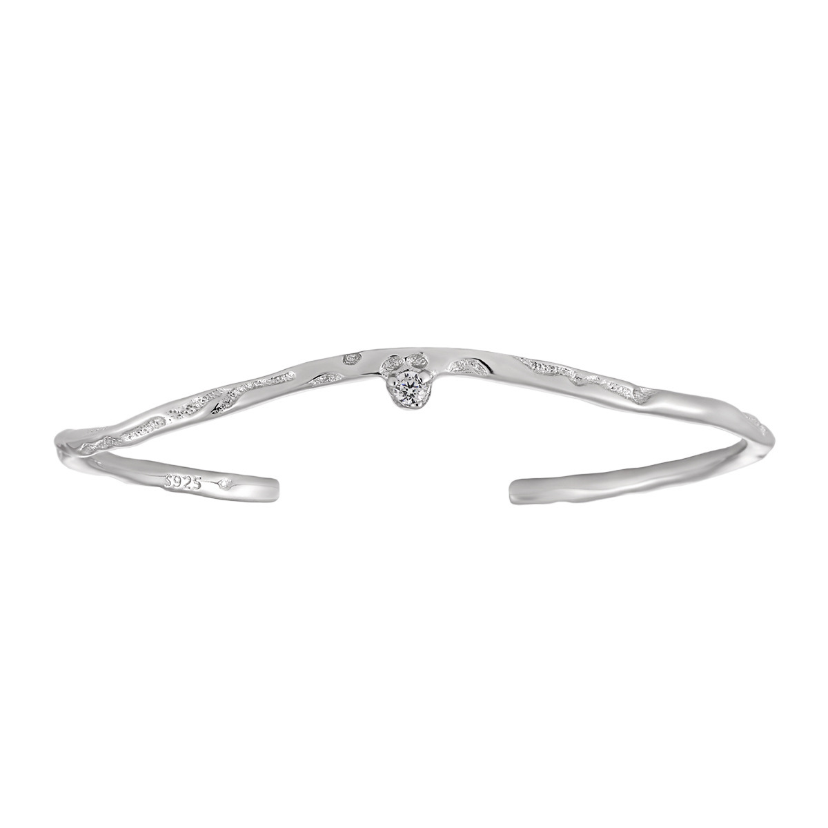 925スターリングシルバー カフスブレスレット, プラチナメッキ, マイクロパヴェジルコニア & 女性用, 内径:約 60mm, 売り手 パソコン