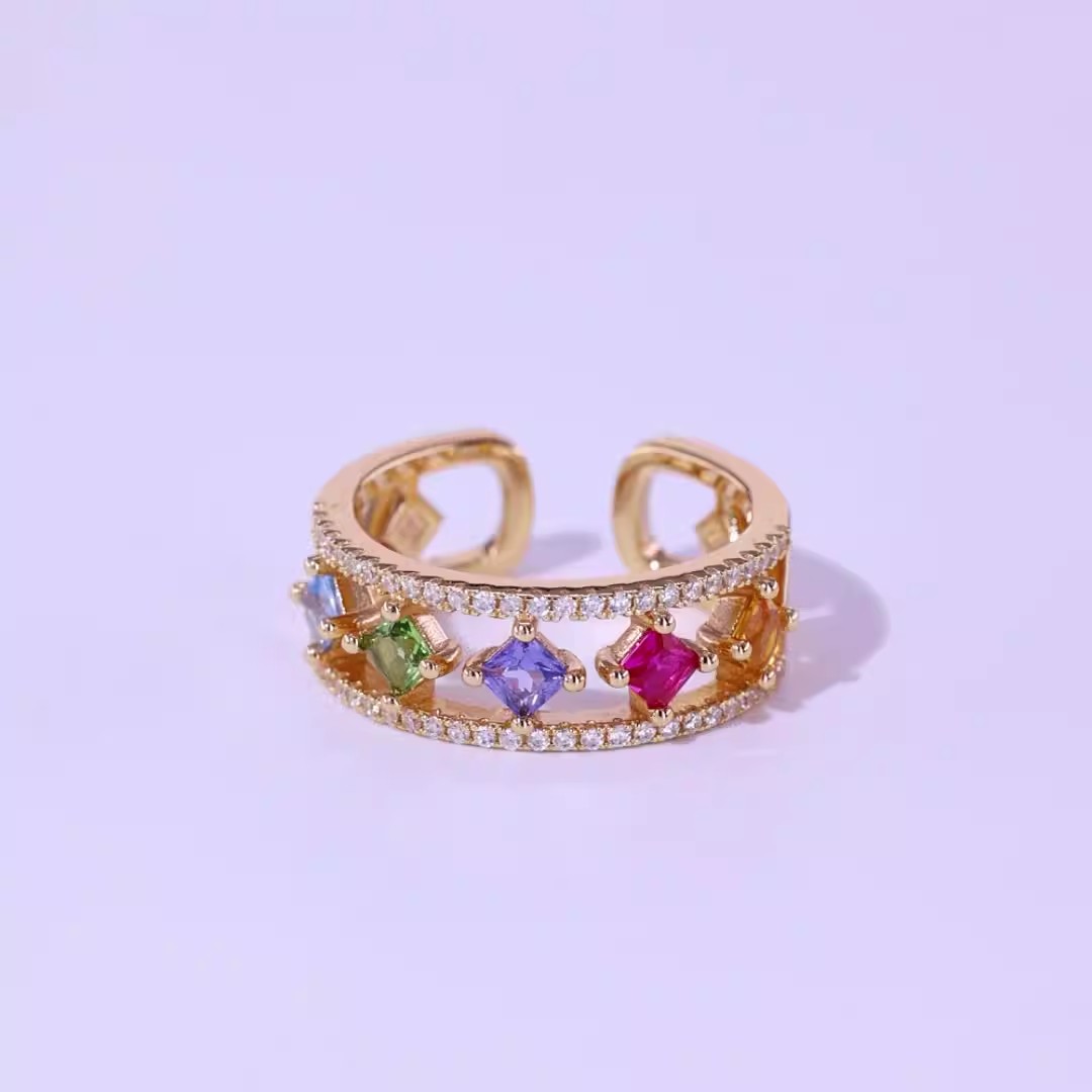 925スターリングシルバー カフ指輪, 幾何学パターン, ゴールドメッキ, マイクロパヴェジルコニア & 女性用 & くり抜き, サイズ:7, 売り手 パソコン