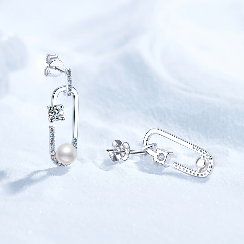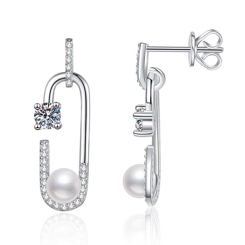 純銀製ドロップ イヤリング, 92.5%純度シルバー, メッキ, 無色 売り手 ペア
