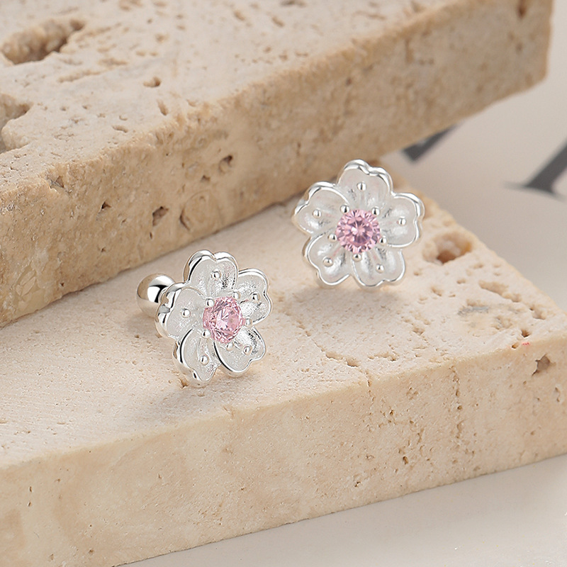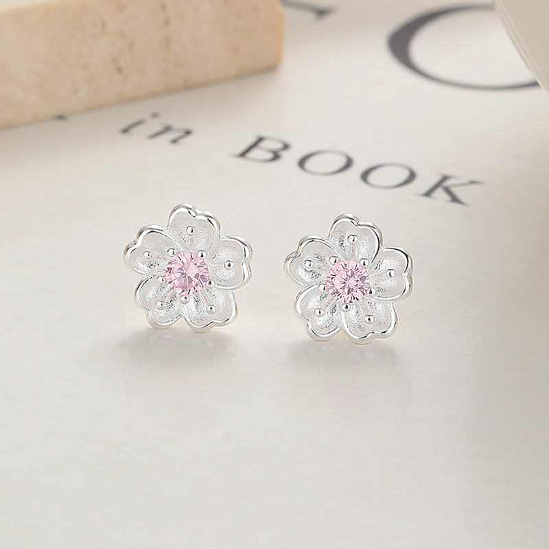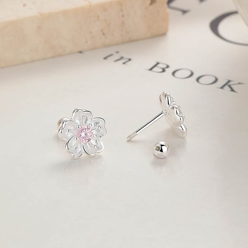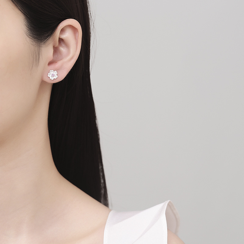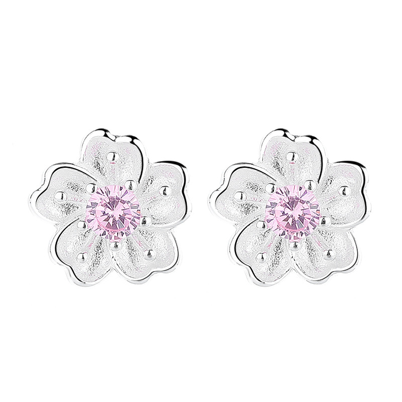 キュービックジルコニアマイクロパヴェスターリングシルバーイヤリング, 92.5%純度シルバー, とともに ゴムearnut, 花形, メッキ, マイクロパヴェジルコニア, 無色 売り手 ペア