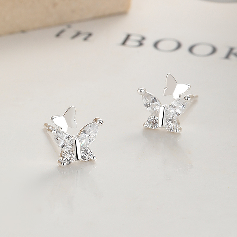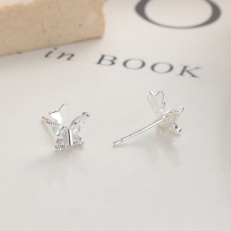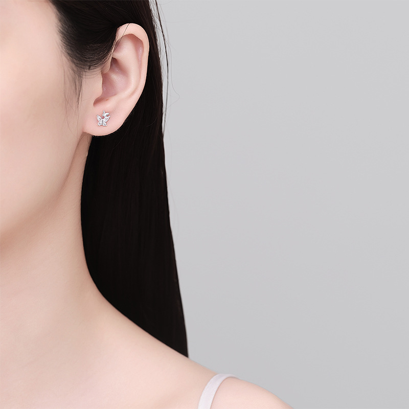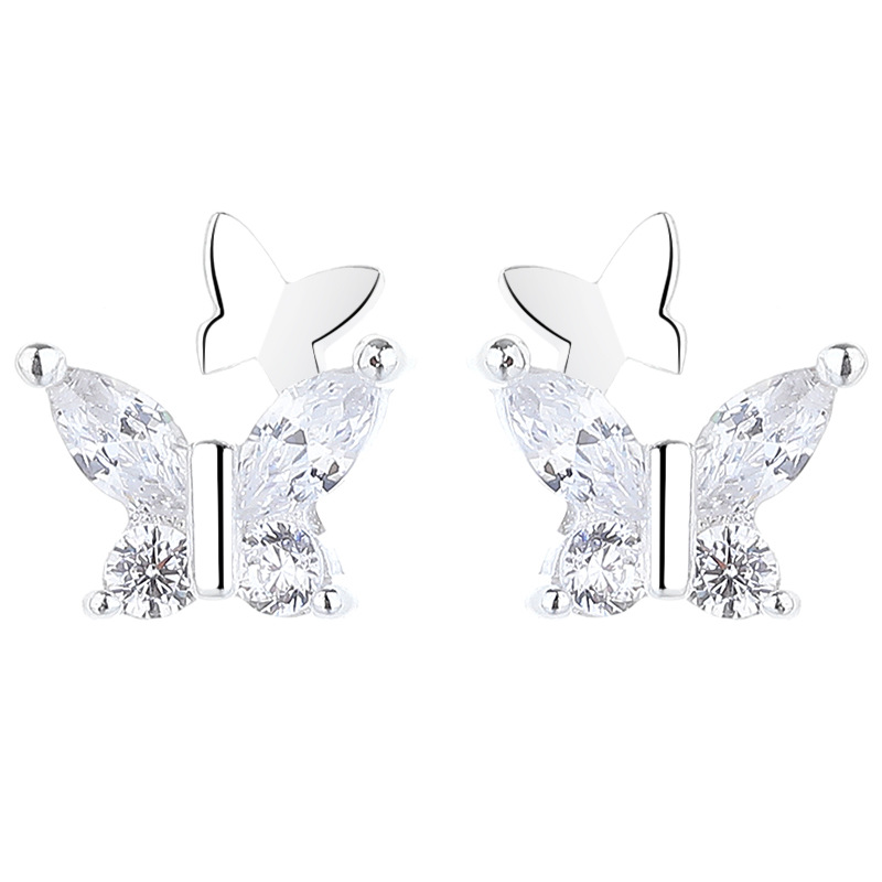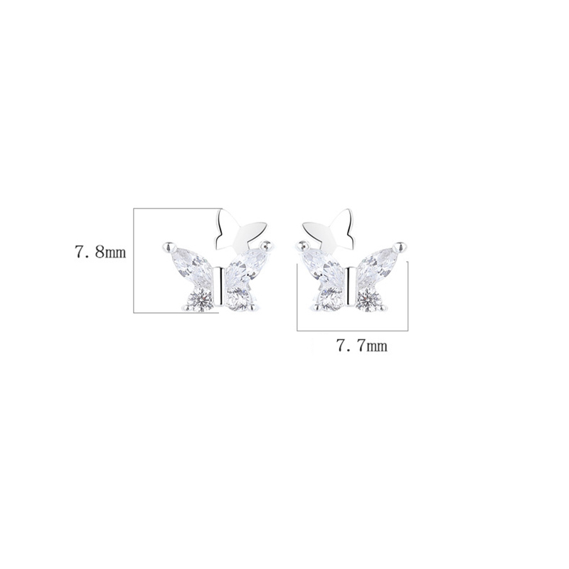 925スターリングシルバー スタッドイヤリング, 蝶, マイクロパヴェジルコニア & 女性用, シルバー, 7.7x7.8mm, 売り手 ペア
