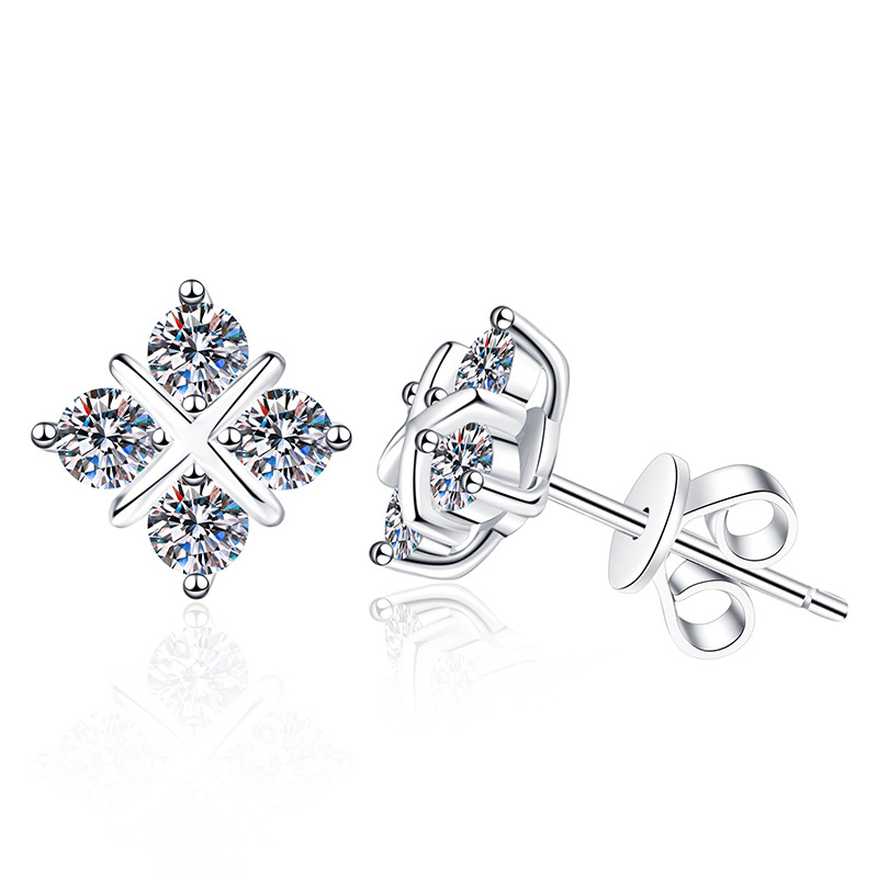 925スターリングシルバー スタッドイヤリング, とともに モイッサニテ, 幾何学パターン, プラチナメッキ, ファッションジュエリー & 女性用, 9.5x9.5mm, 売り手 ペア