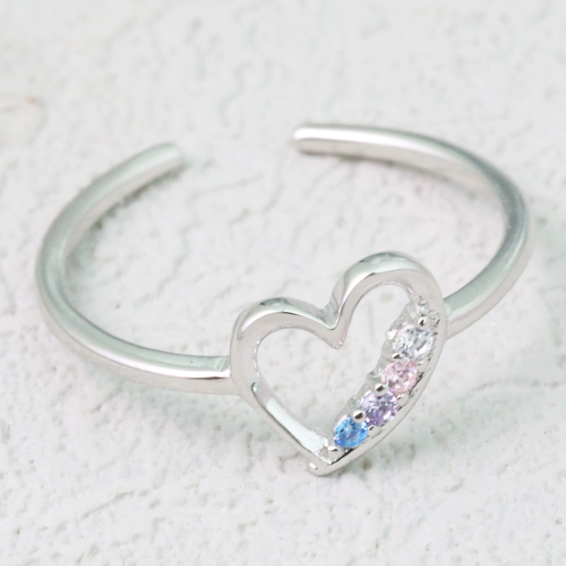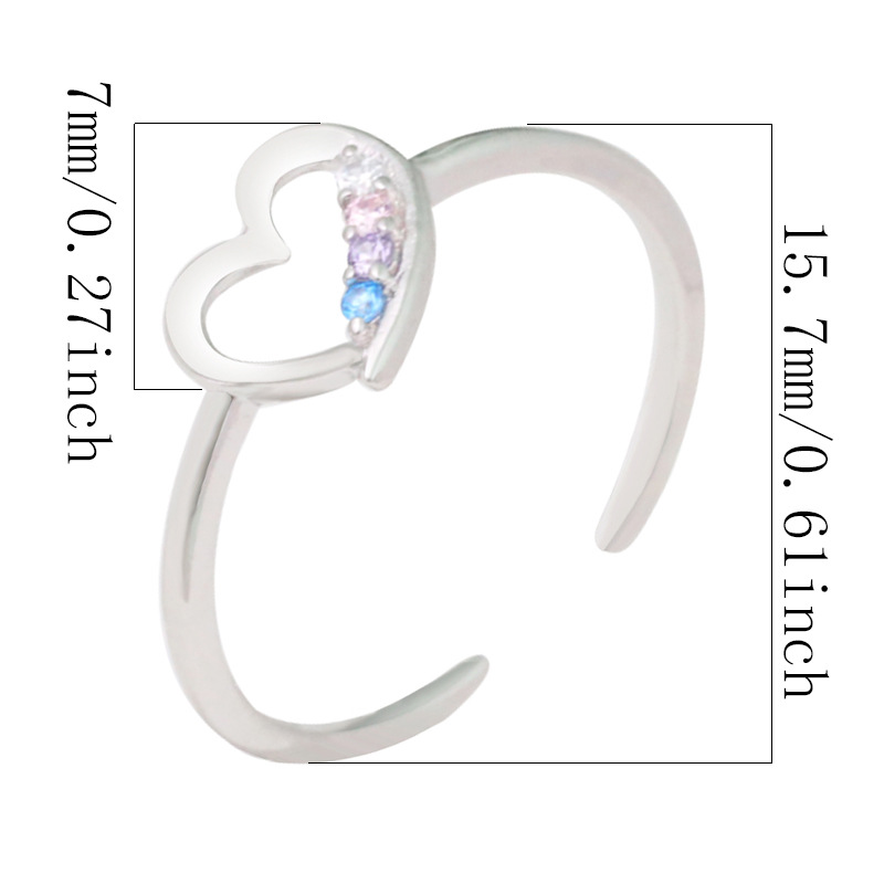 925スターリングシルバー 足指リング, ハート形, プラチナメッキ, マイクロパヴェジルコニア & 女性用 & くり抜き, サイズ:5, 売り手 パソコン