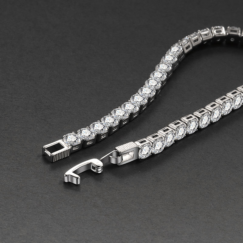 キュービックジルコニアマイクロパヴェブラスブレスレット, 銅, とともに キュービックジルコニア, シルバーメッキ, 調節の可能性がある & マイクロパヴェジルコニア & 女性用, 無色, ニッケル、鉛、カドミウムフリー, 190mm,9mm, 長さ:約 7.4 インチ, 売り手 ストランド