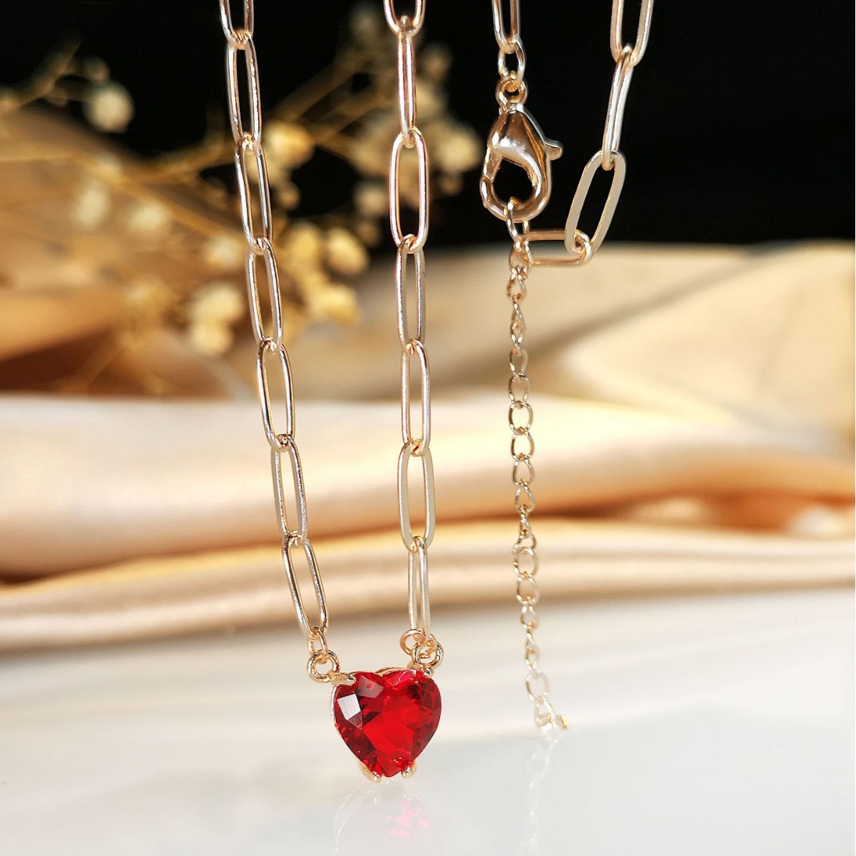 真鍮キュービックジルコニア ネックレス, 銅, ハート形, メッキ, ファッションジュエリー & マイクロパヴェジルコニア, ミックスカラー, 売り手 パソコン