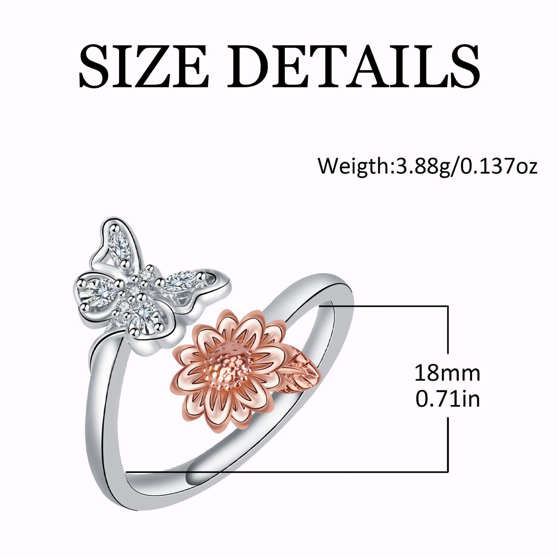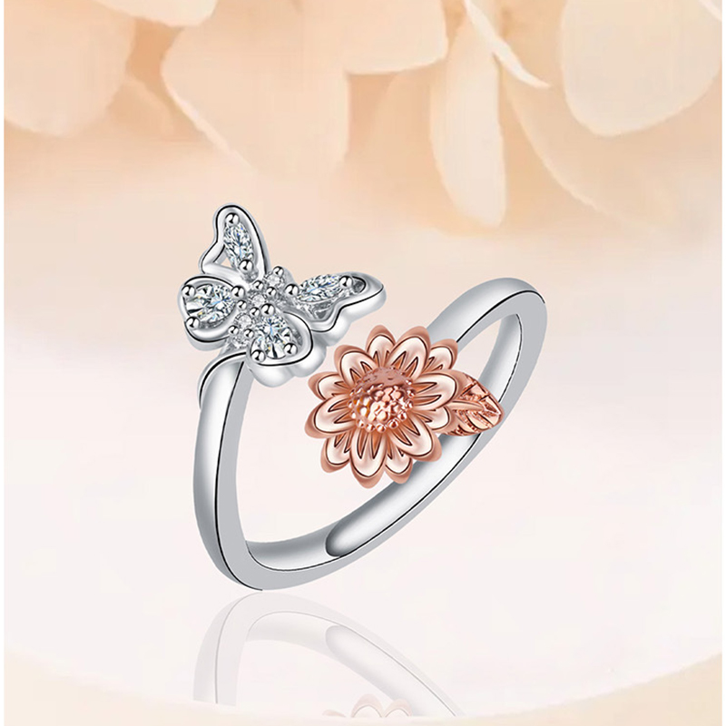 キュービックジルコニアマイクロパヴェブラスフィンガーリング, 銅, 蝶, メッキ, 母の日ジュエリー & マイクロパヴェジルコニア & 女性用, サイズ:8, 売り手 パソコン