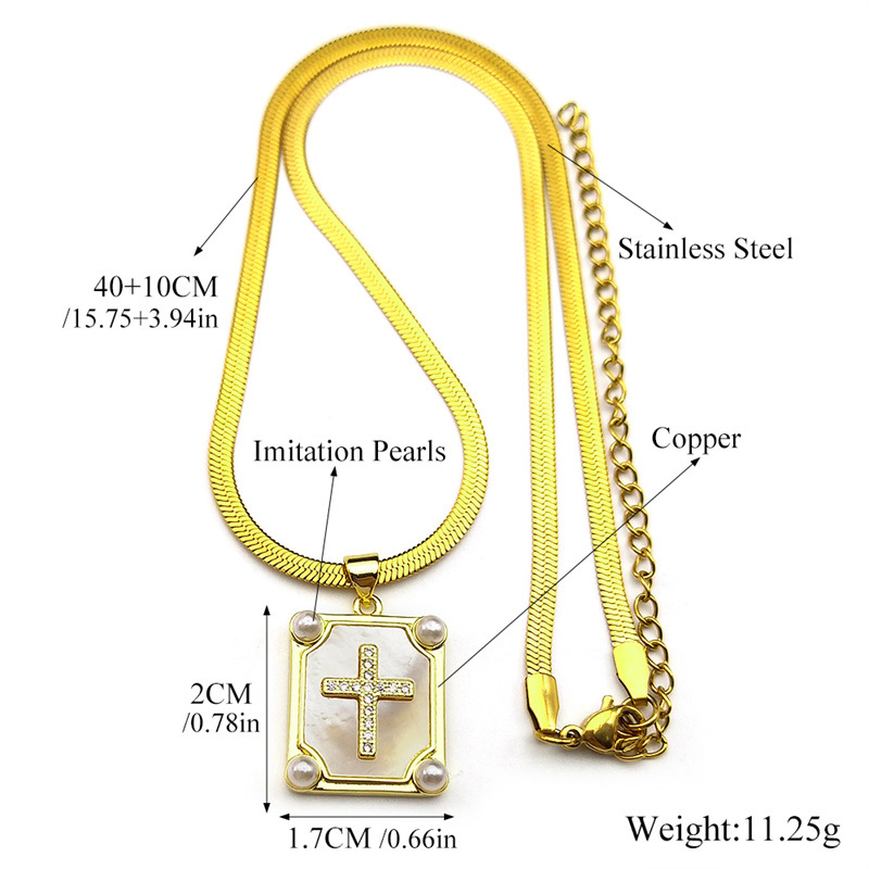 手作り真鍮のネックレス, 銅, とともに 304ステンレス鋼チェーン & 白い貝 & プラスチック製パール, ゴールドメッキ, ファッションジュエリー & 女性用, 売り手 パソコン