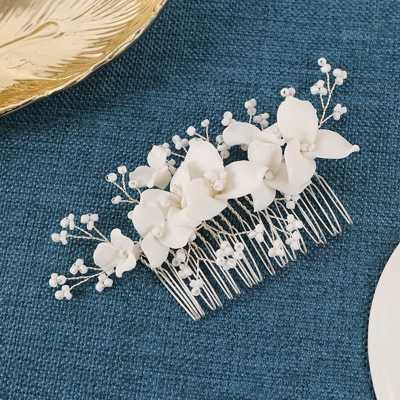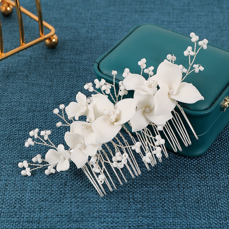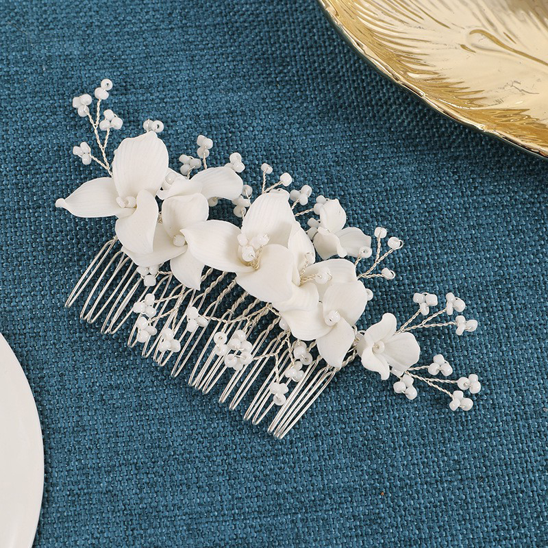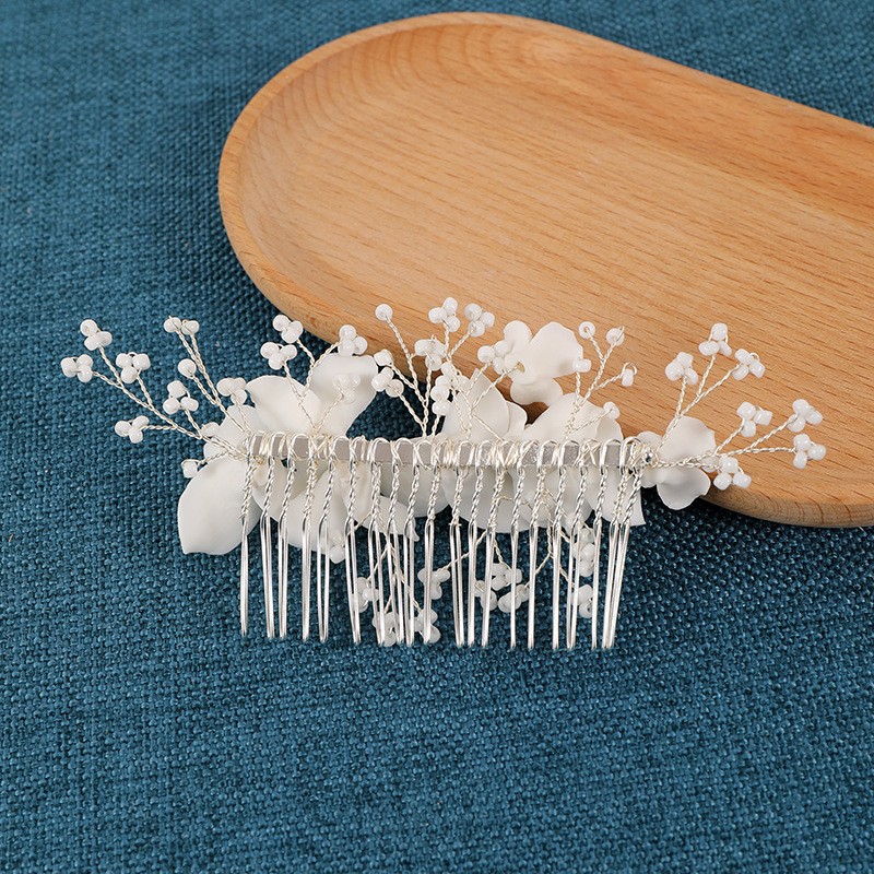 ブライダル装飾的な髪のくし, 亜鉛合金, とともに シードビーズ & 黄銅ワイヤ & ポリマークレイ, ハンドメイド, ファッションジュエリー & 女性用, シルバー, 150x50x50mm, 売り手 パソコン