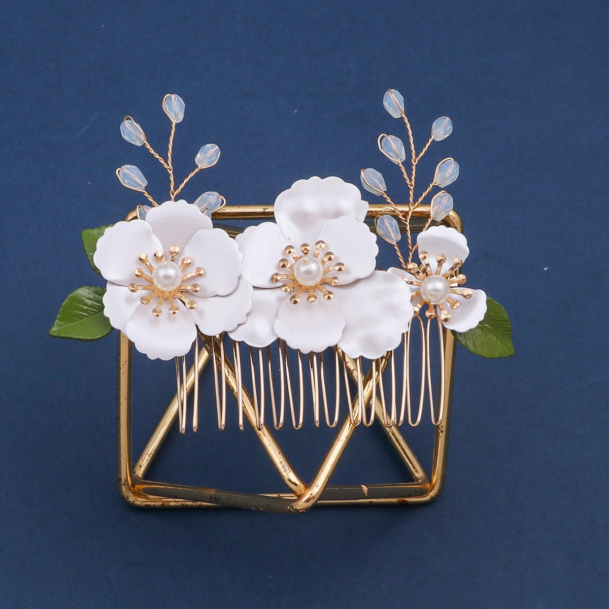 ブライダル装飾的な髪のくし, 亜鉛合金, とともに 黄銅ワイヤ & ポリマークレイ & クリスタル & プラスチック製パール, ハンドメイド, ファッションジュエリー & 女性用, 金色, 売り手 パソコン