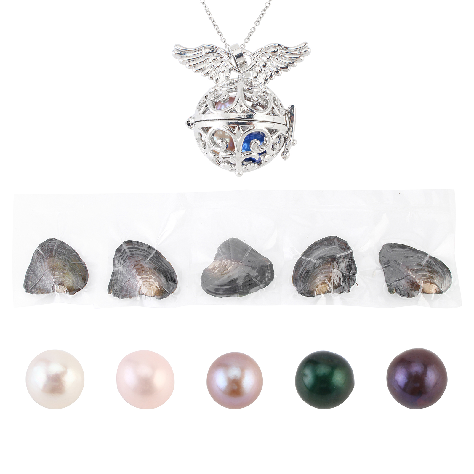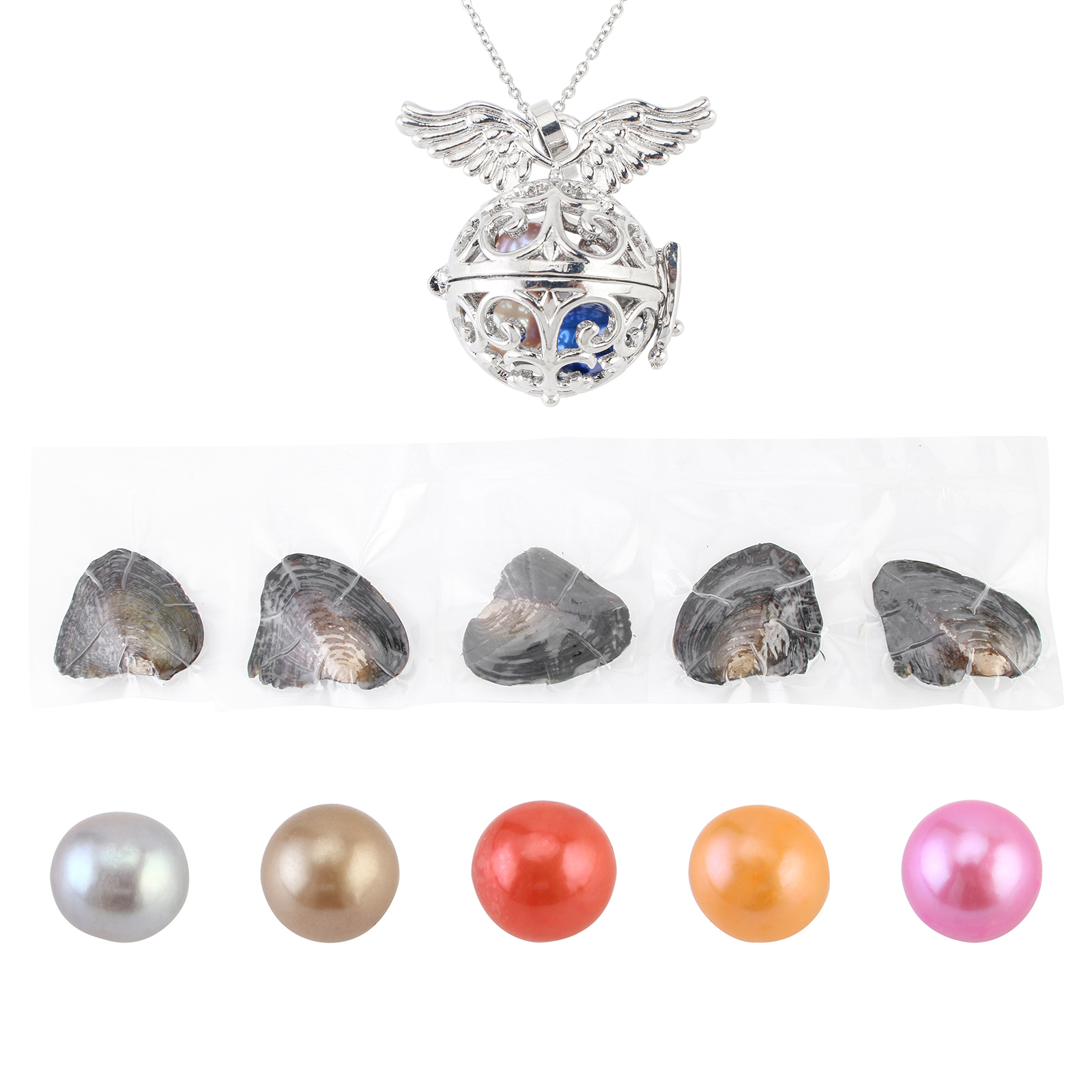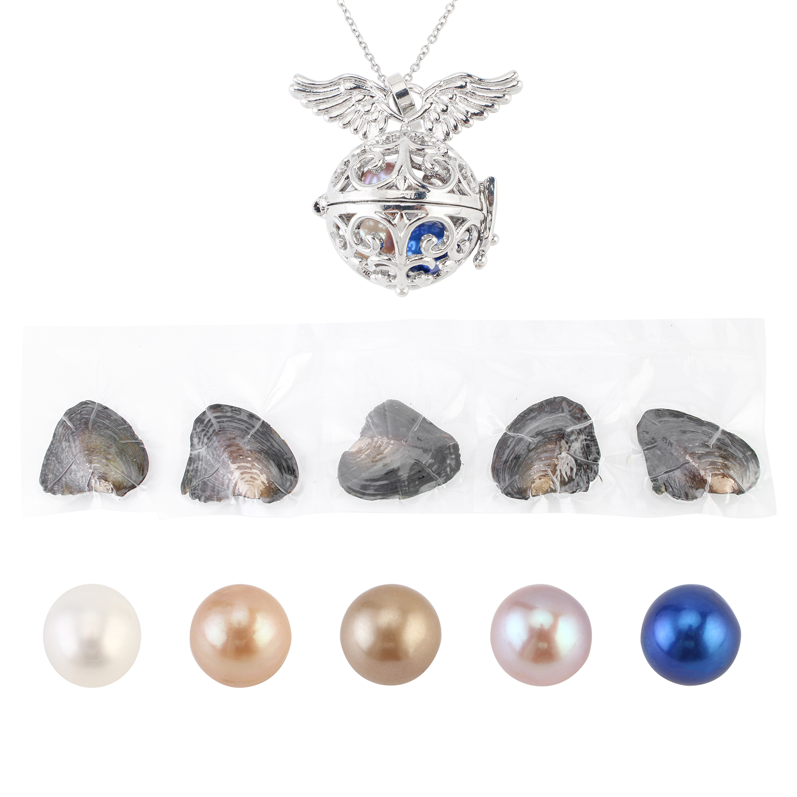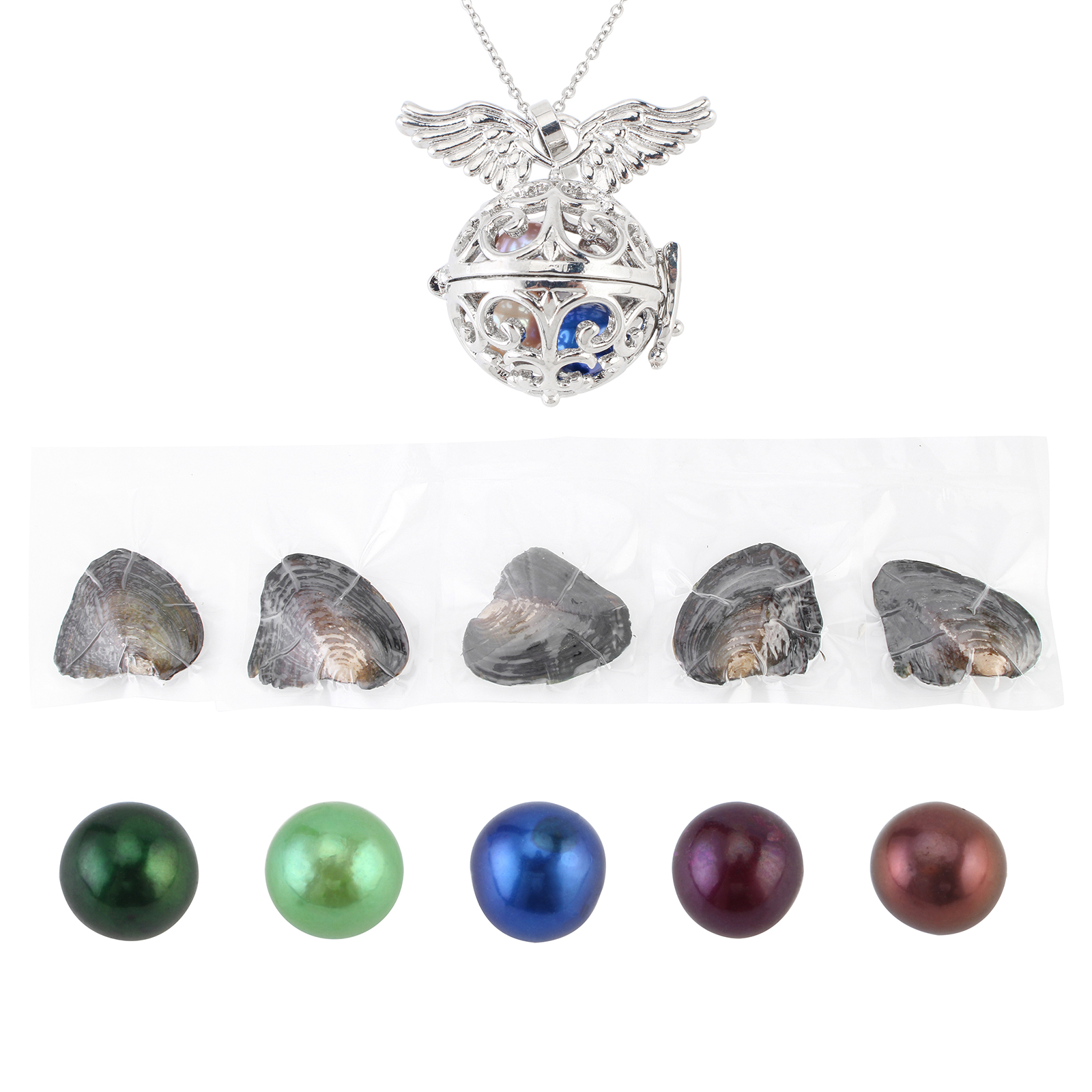 オイスター&ウィッシュパールキット, 天然有核フレッシュウォーターパール, ペンダント & 指輪 & イヤリング & ネックレス, とともに 貝 & 亜鉛合金, プラチナカラーメッキ, 20-30cm, サイズ:5-8, 長さ:約 18 インチ, 売り手 セット