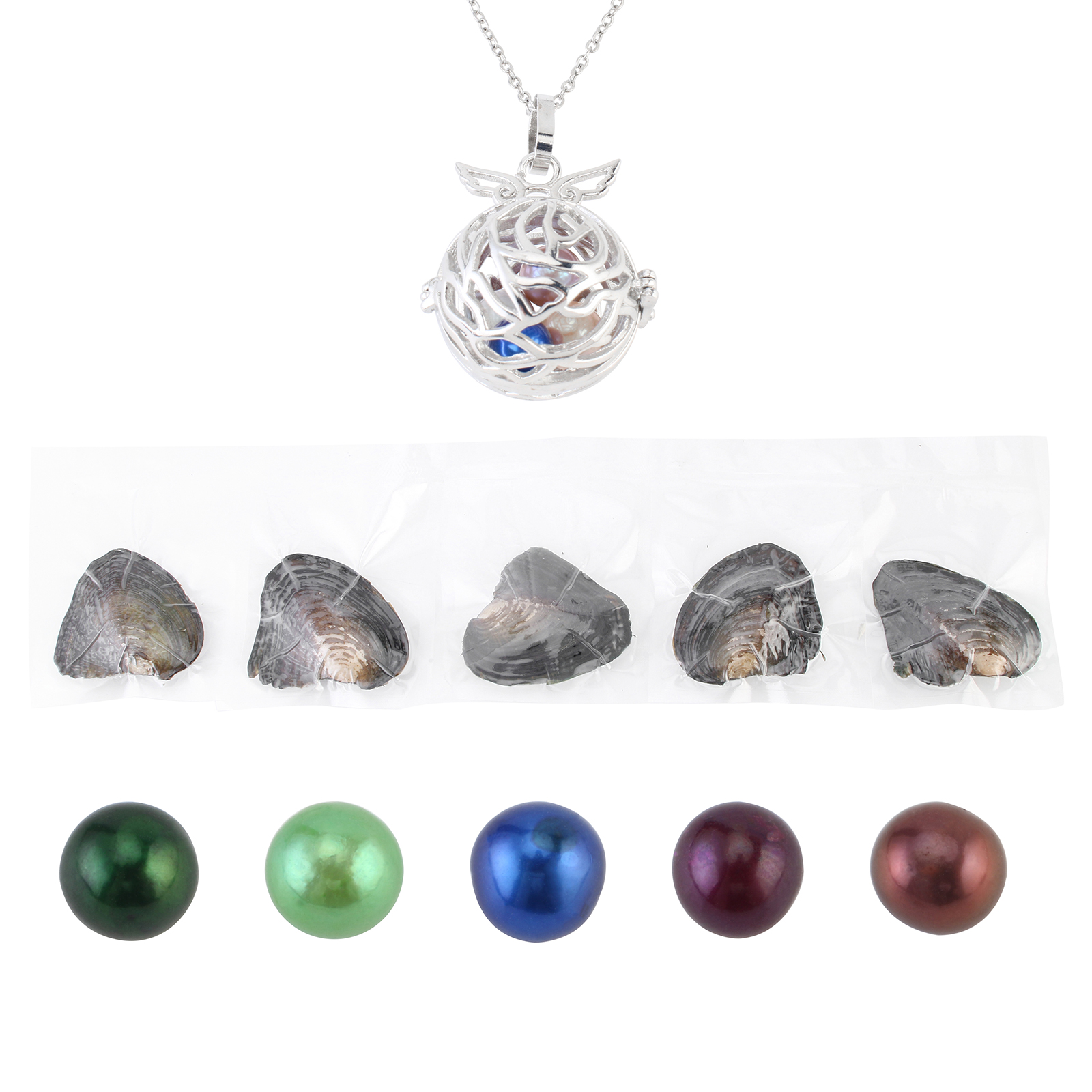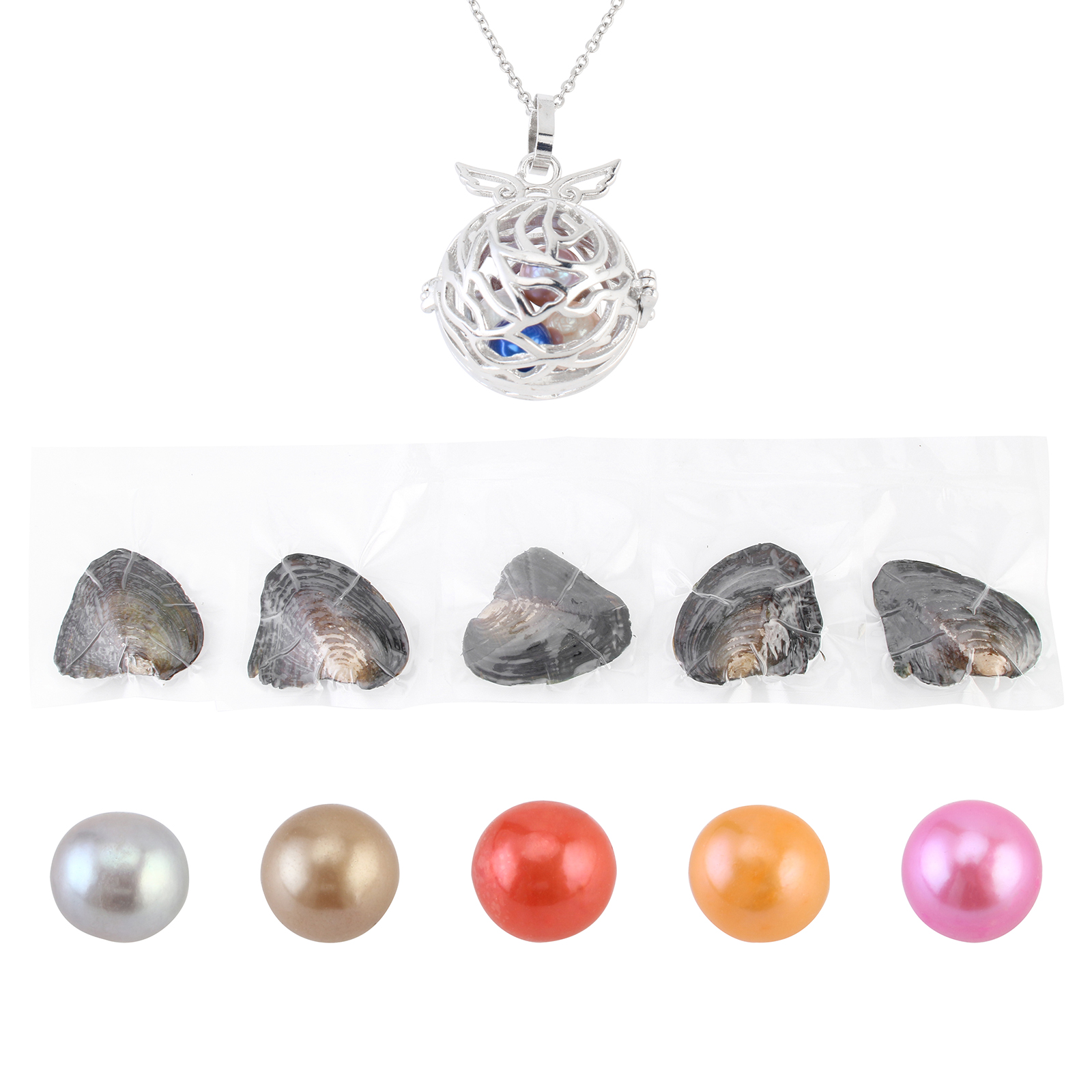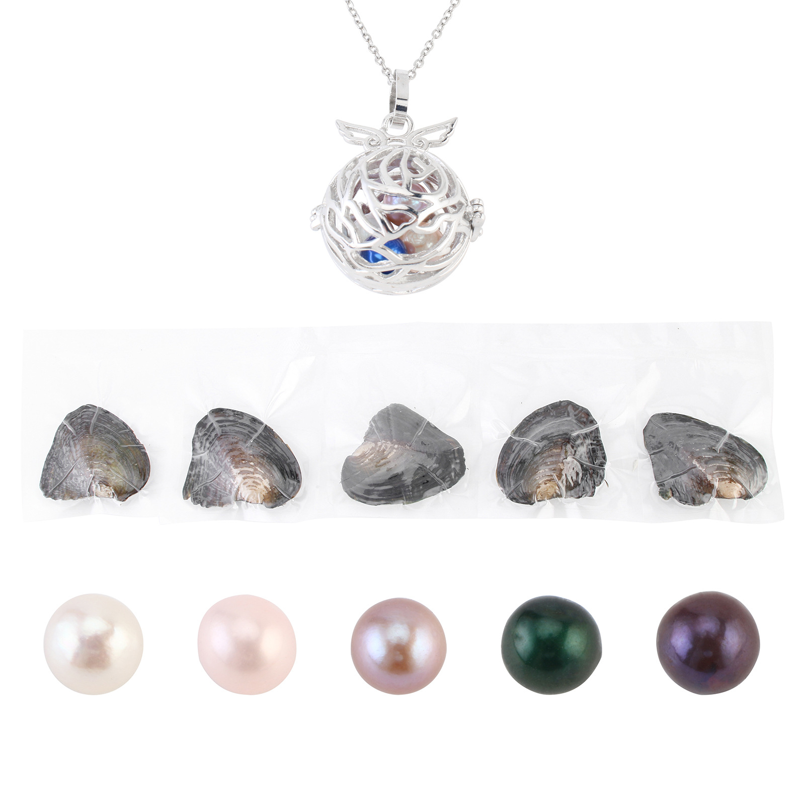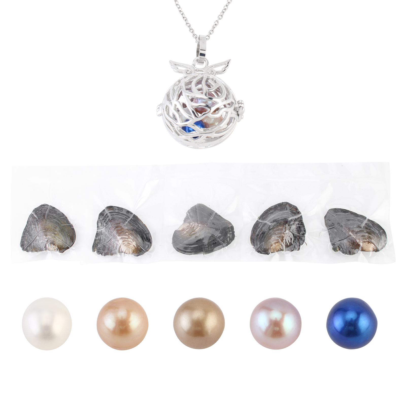 オイスター&ウィッシュパールキット, 天然有核フレッシュウォーターパール, ペンダント & 指輪 & イヤリング & ネックレス, とともに 貝 & 亜鉛合金, プラチナカラーメッキ, 20-30cm, サイズ:5-8, 長さ:約 18 インチ, 売り手 セット
