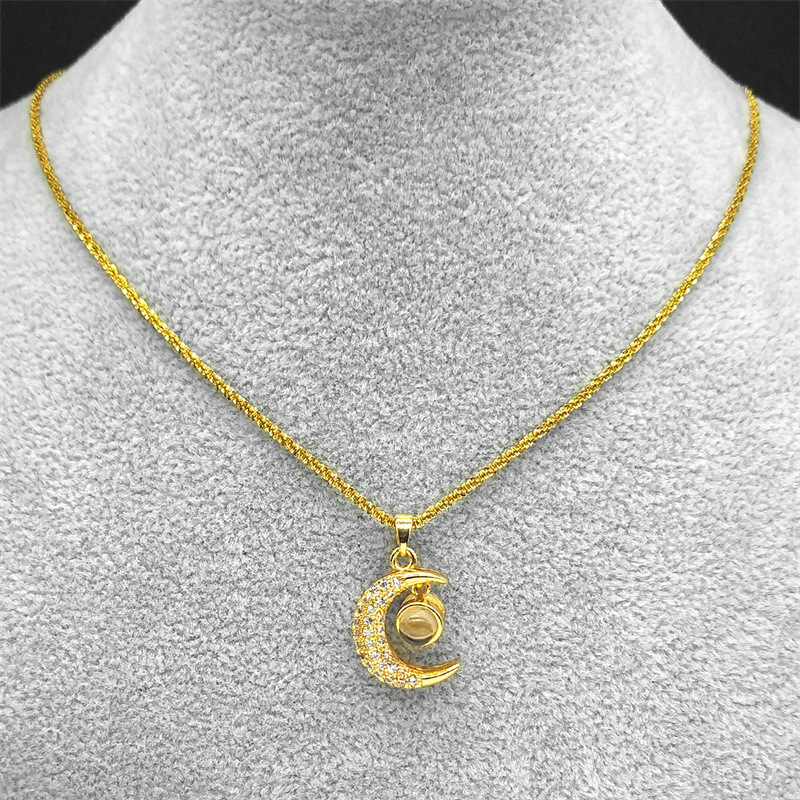 キュービックジルコンマイクロパヴェブラスネックレス, 銅, 星, ゴールドメッキ, マイクロパヴェジルコニア & 女性用, ニッケル、鉛、カドミウムフリー, 15mm,11mm, 長さ:20 インチ, 売り手 パソコン