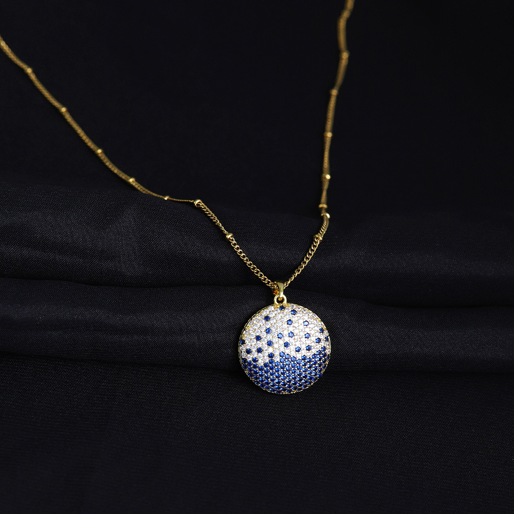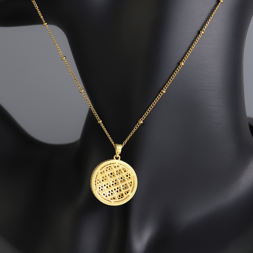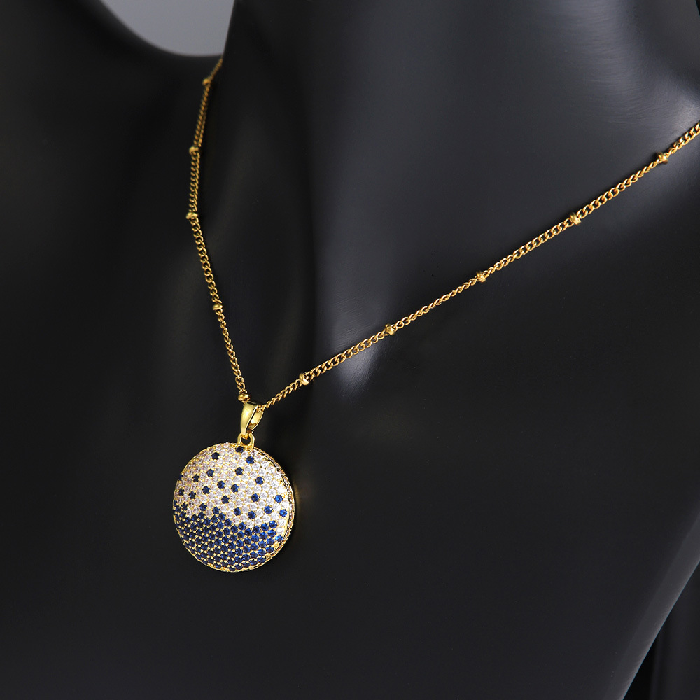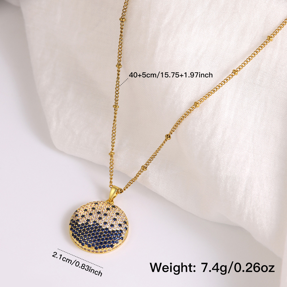 キュービックジルコンマイクロパヴェブラスネックレス, 銅, とともに 5cm エクステンダチェーン, ラウンド形, ファッションジュエリー & マイクロパヴェジルコニア & 女性用, 21mm, 長さ:約 40 センチ, 売り手 ストランド