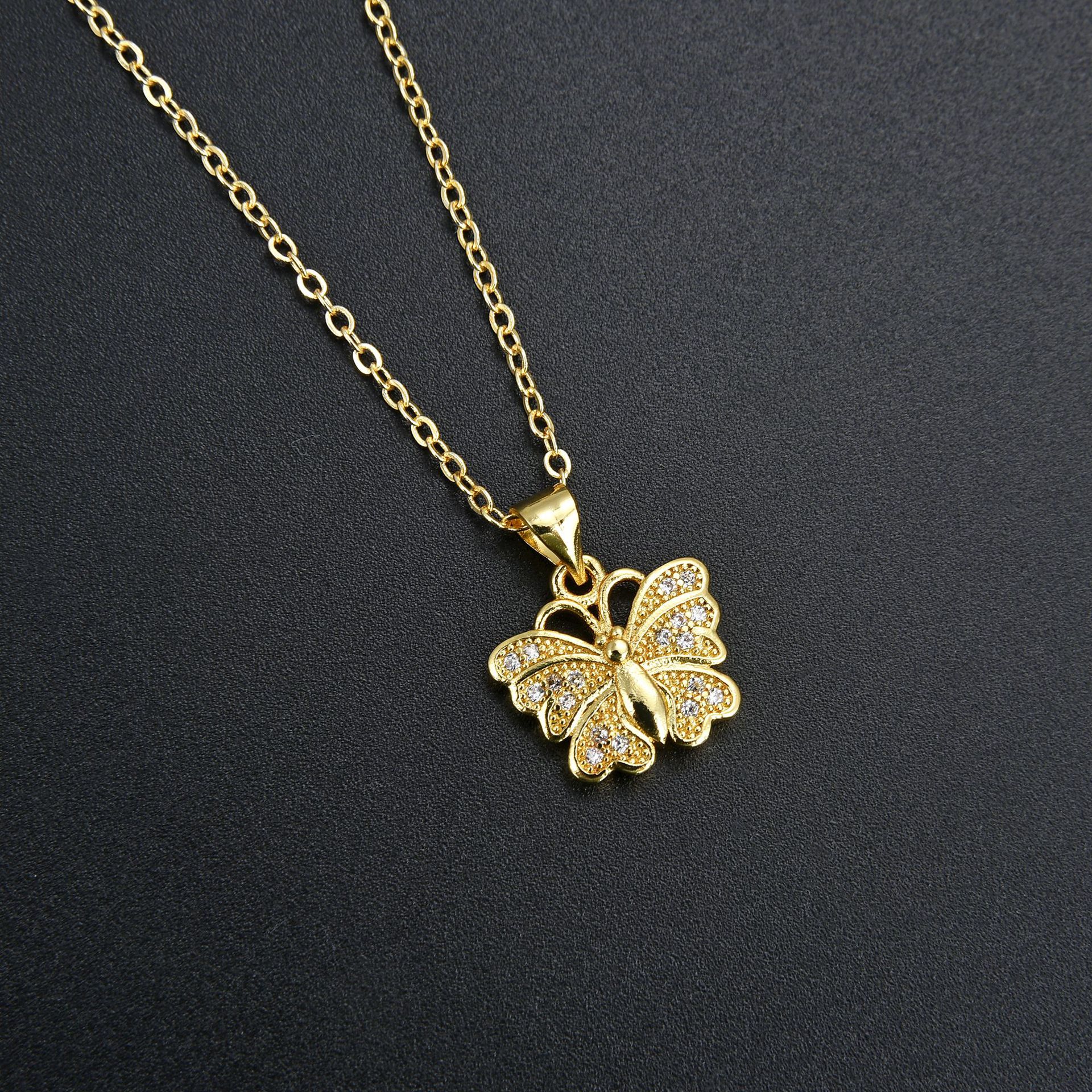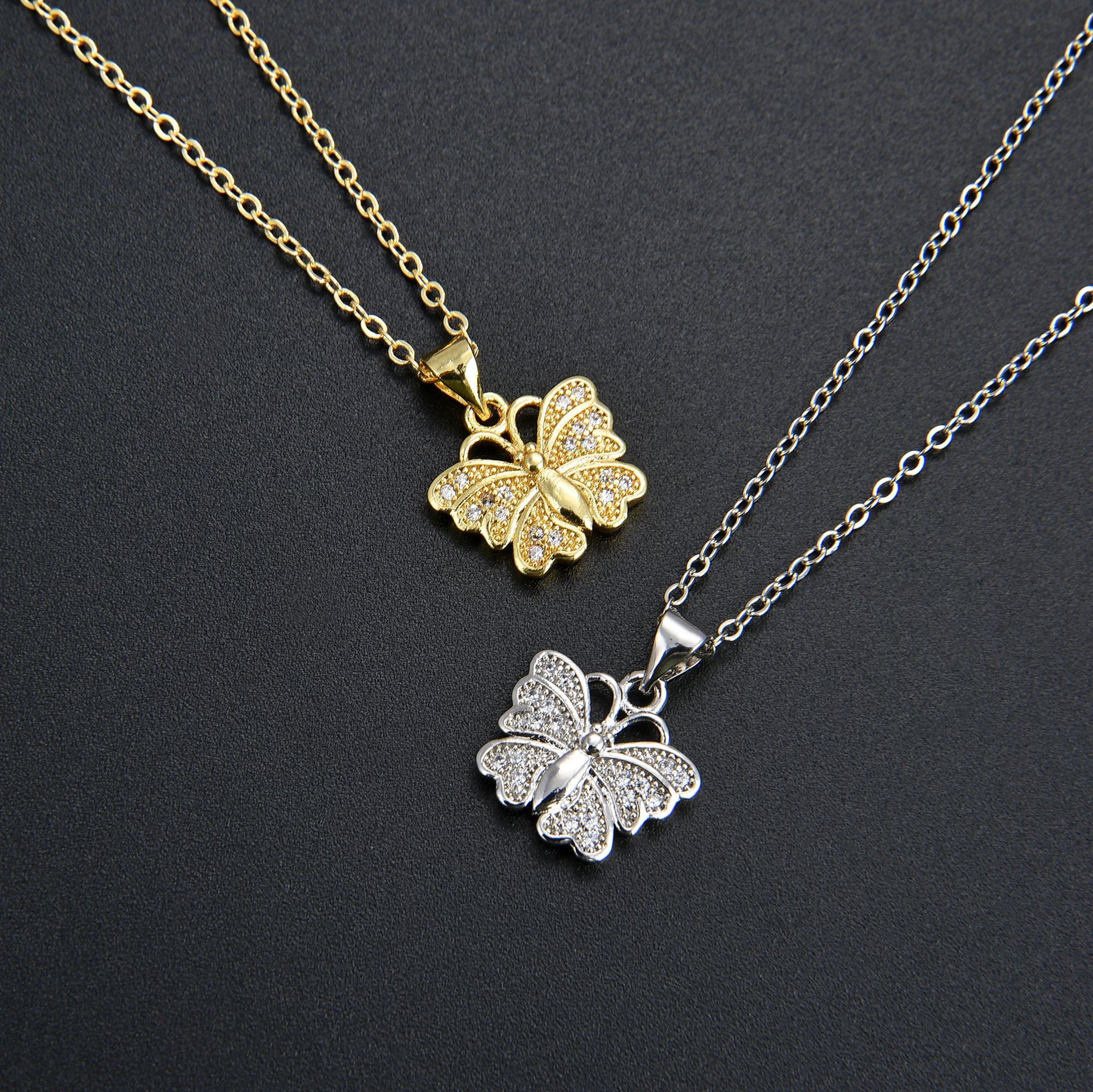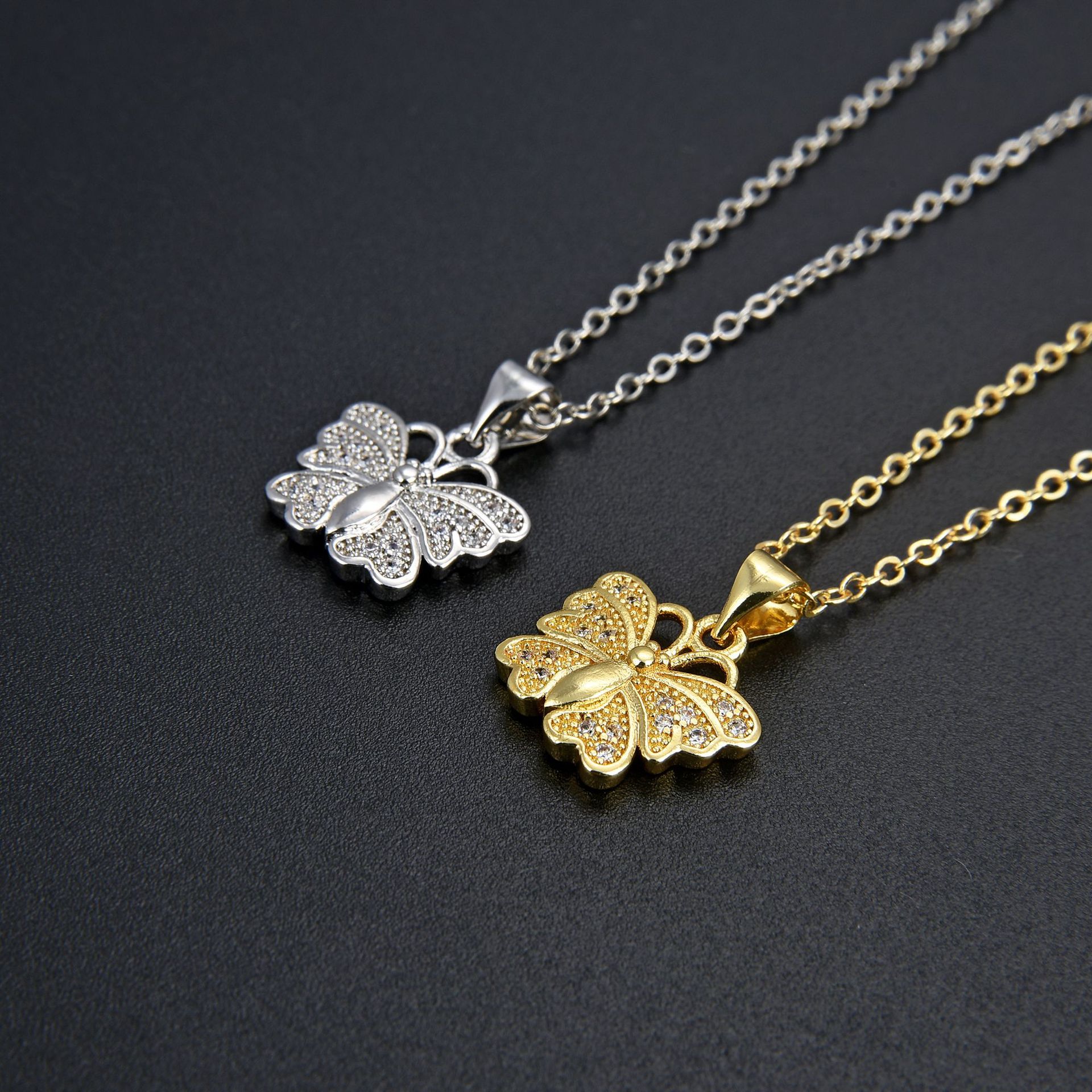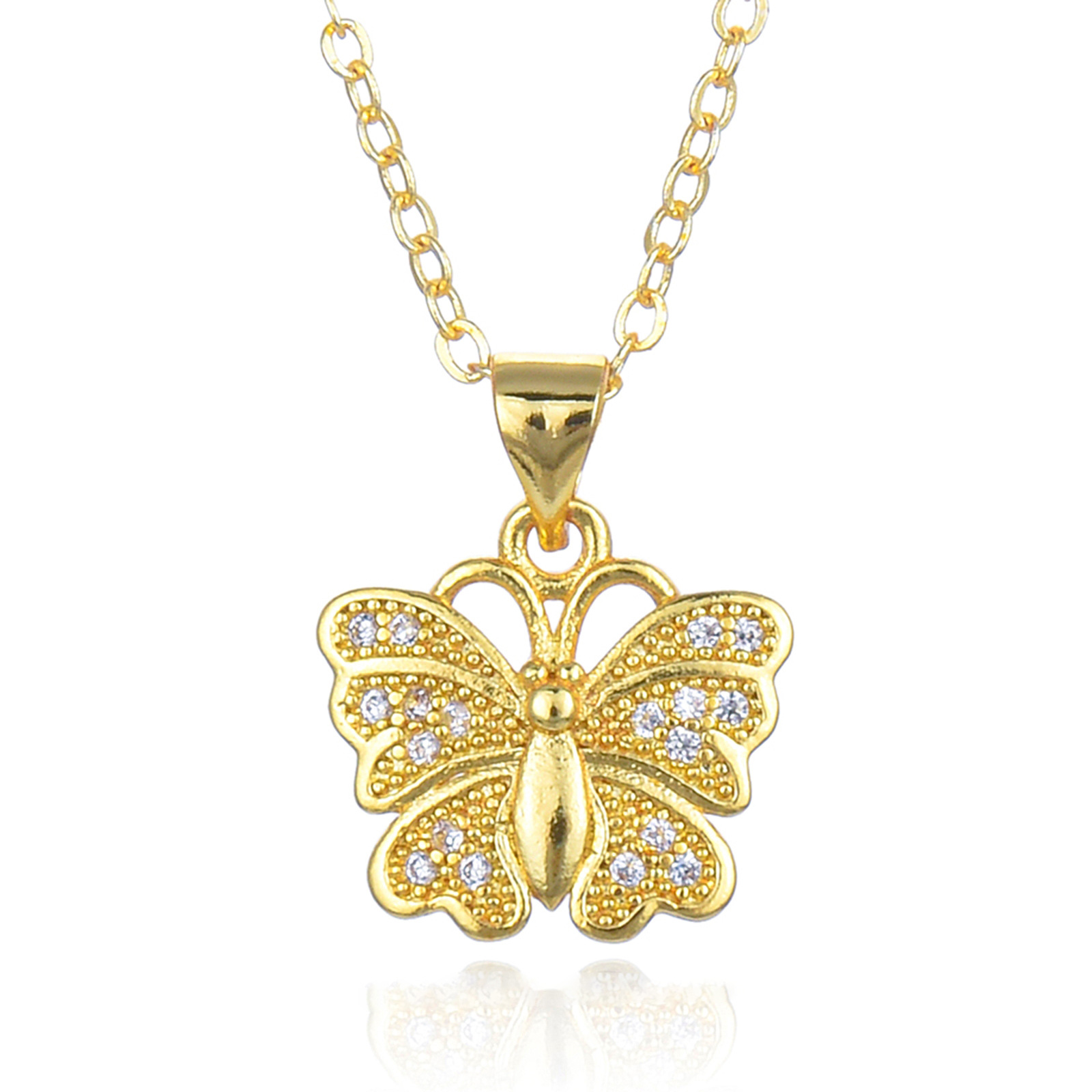 キュービックジルコンマイクロパヴェブラスネックレス, 銅, とともに 5cm エクステンダチェーン, 蝶, ファッションジュエリー & マイクロパヴェジルコニア & 女性用, 無色, 長さ:45 センチ, 売り手 パソコン