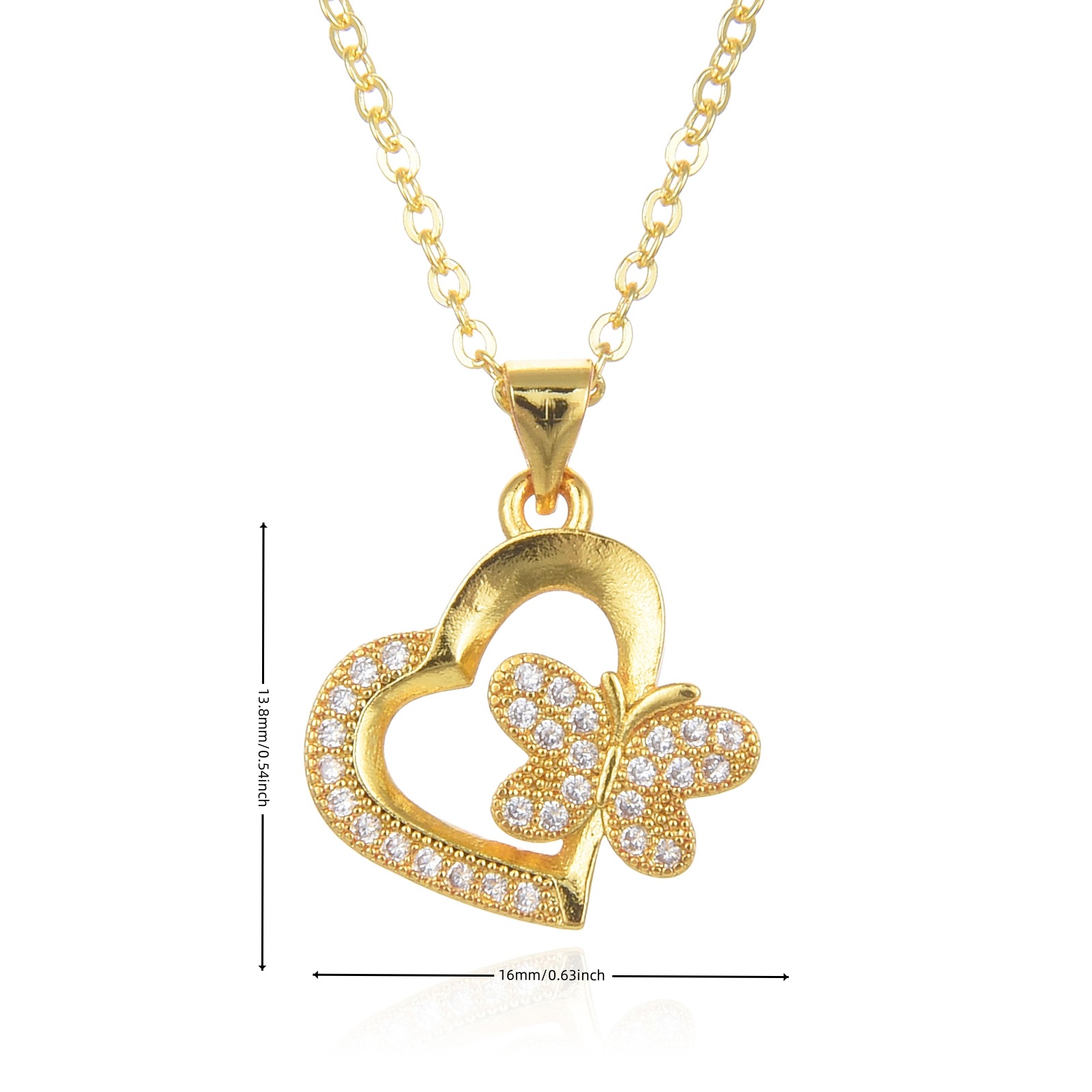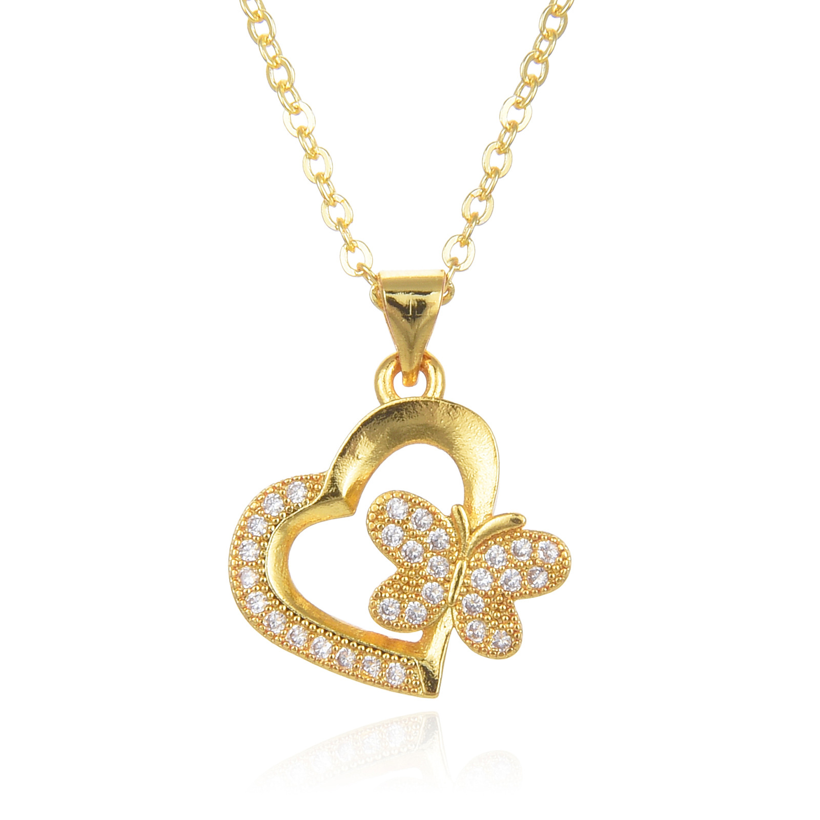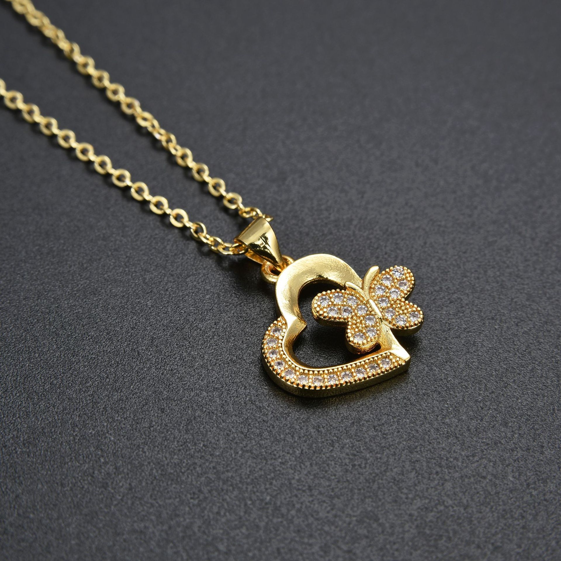 キュービックジルコンマイクロパヴェブラスネックレス, 銅, ハート形, 純正ゴールド, 楕円形の鎖 & マイクロパヴェジルコニア & 女性用, 鉛、カドミウムフリー, 40cm, 長さ:約 15.5 インチ, 売り手 ストランド